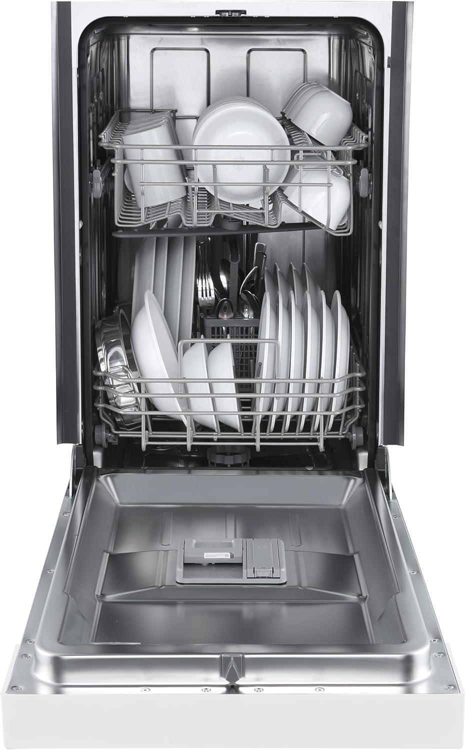 FORNO 18” POLO Dishwasher in White with 8 Place Settings - Kitchen Dishwasher with Front Push Control and 3 Module Basket - Energy Efficient Dishwasher with 6 Wash Program - 52 dBa
