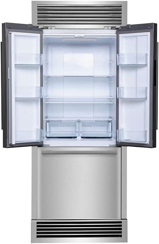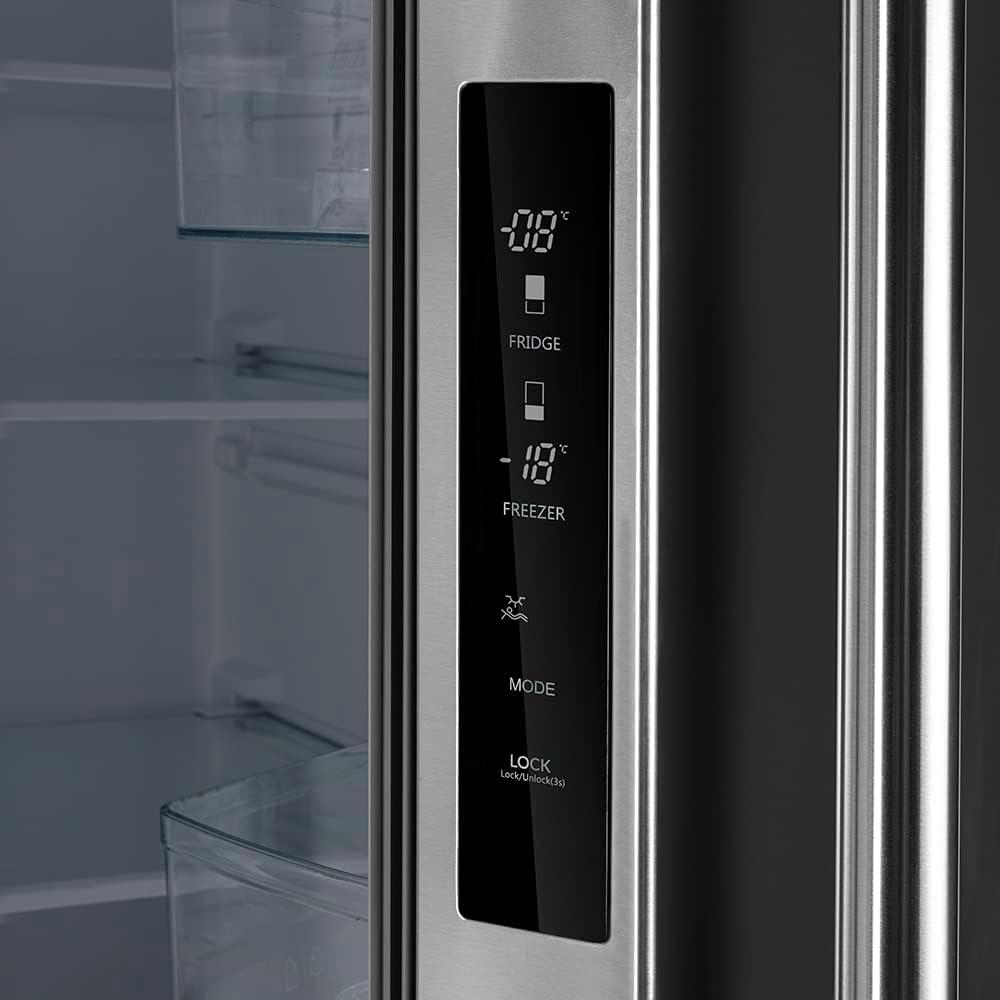 Forno appliances introduce you to the model 1974 side-by-side freezer refrigerator, with an elegant stainless steel finish. French door refrigerator offers a frost-free, free-standing design with a multi-air flow cooling system. The refrigerator compartment also offers a convenient fast freeze setting. Rest assured that this unit will keep your food at perfect temperatures with its intelligence chip temperature control feature and touch control, door opening alarm, child lock mode, and vacation mode.