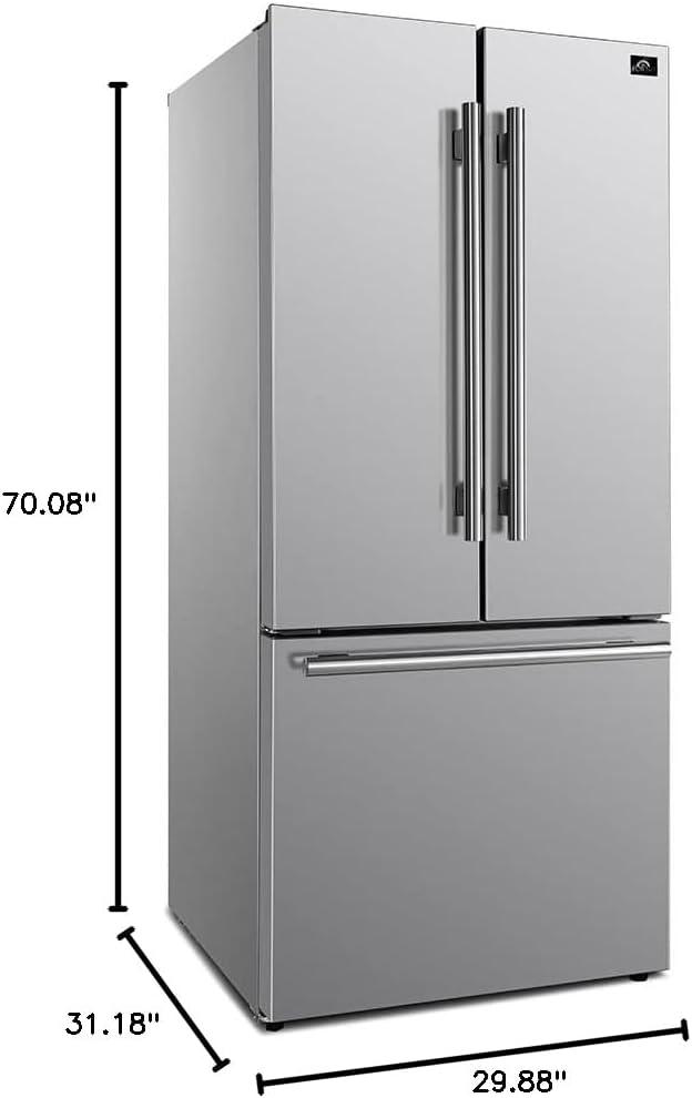 Forno 30" Inch w. French Door Refrigerator with Bottom Freezer and 17.5Cu. Ft. Total Capacity - Stainless Steel No Frost Fridge with Adjustable Glass Shelves and Child Safety Lock