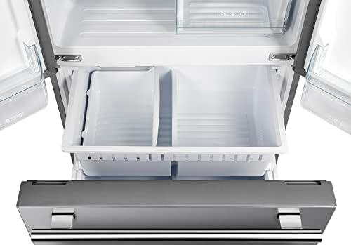 𝐅𝐑𝐄𝐒𝐇 𝐅𝐎𝐎𝐃 𝐙𝐎𝐍𝐄: The fresh food compartment offers ample storage space to store your fresh food with 3 adjustable glass shelves, a gallon bin, and easily accessible crisper drawers when doors are open at 90°. This french door refrigerator fresh food storage capacity of 12.35 cubic feet