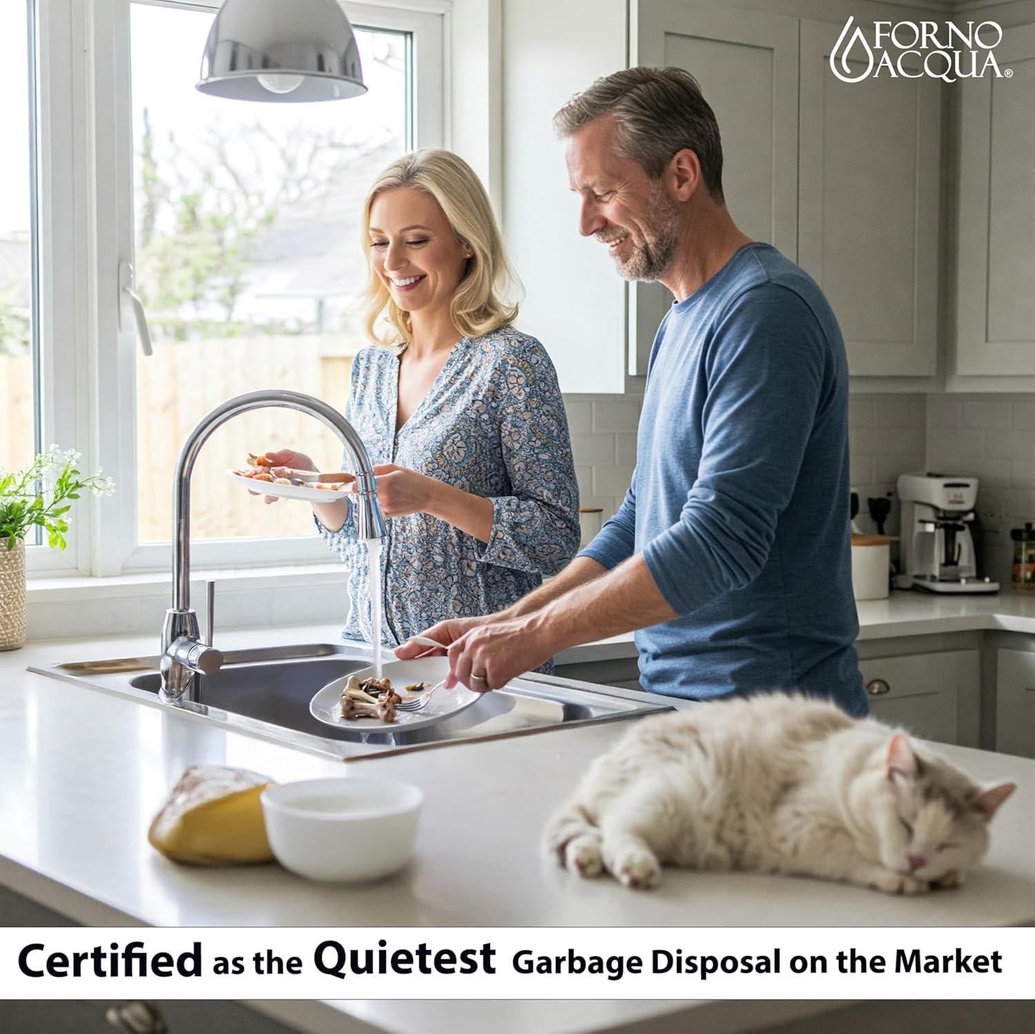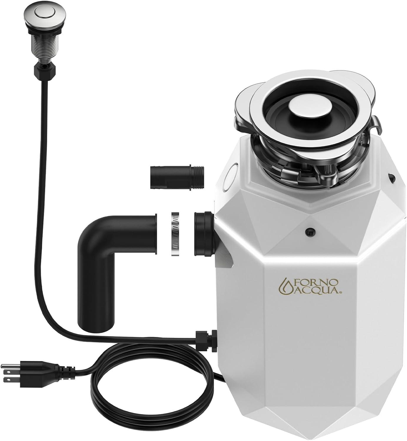 imageFORNO ACQUA BrightDIAMOND Moonstone 34 HP Garbage Disposal Super Quiet Waste Disposer with Motion Sensor Cabinet Light PreWired Air Switch Stainless Steel Chamber Continuous Feed