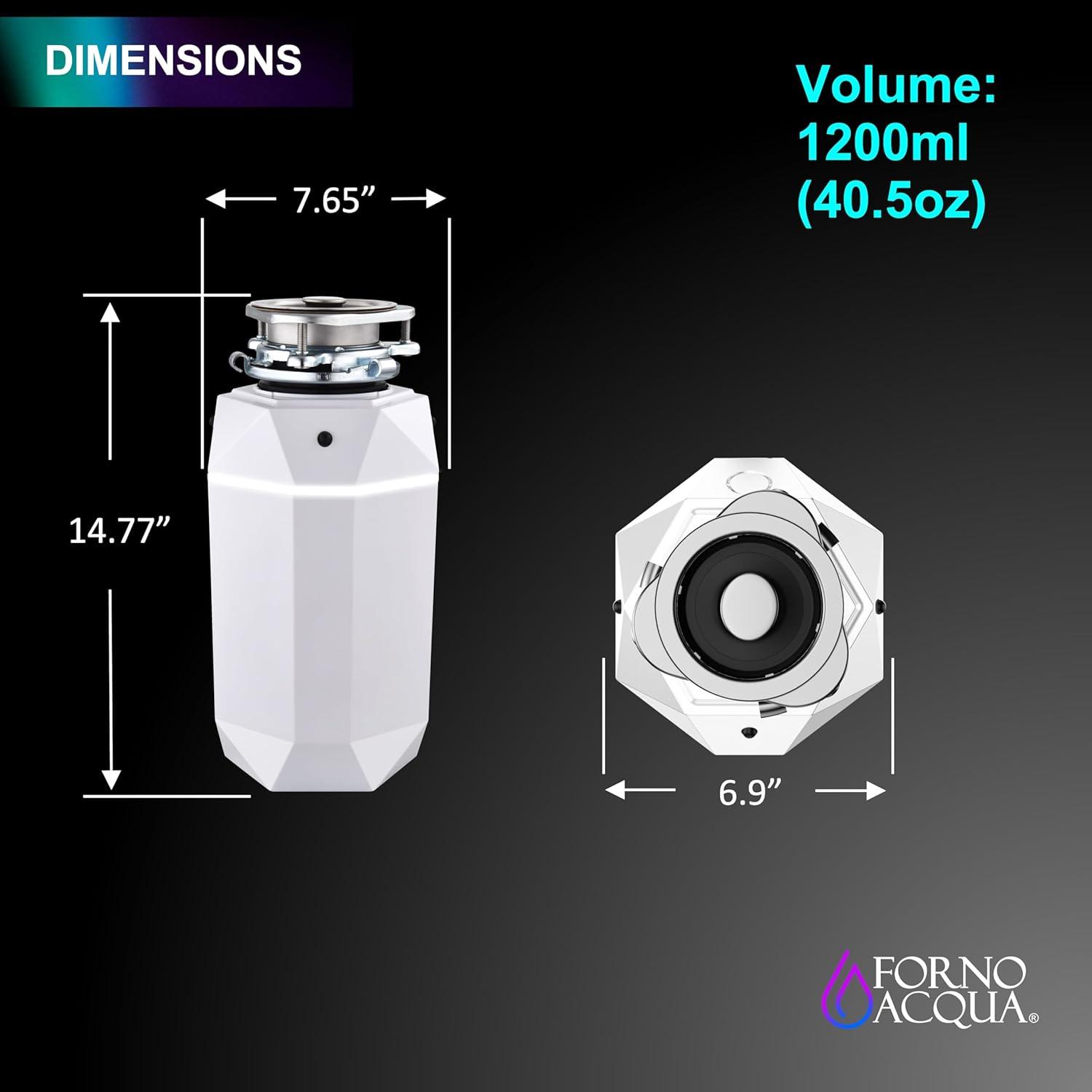 Upgrade your kitchen with the FORNO ACQUA BrightDIAMOND Moonstoone 3/4 HP Super Quiet Waste Disposer, a perfect balance of power, elegance, and advanced design. Featuring a permanent magnet motor, it delivers fast, efficient grinding for daily food waste while operating whisper-quiet for a more peaceful kitchen environment. The innovative BrightDIAMOND 270º Motion-Activated LED Cabinet Light surrounds your cabinet with a stunning glow, merging modern style with practical lighting for everyday chores. Thoughtfully engineered, it comes with a pre-wired air switch and plug-in cord, making installation effortless and operation convenient. Built for performance and durability, this unit includes a stainless steel grinding chamber and blades that stay sharp for life, a dynamic splash guard to reduce noise and odors, and a fire-retardant diamond housing for enhanced safety. Designed for modern households, the FORNO ACQUA BrightDIAMOND ensures your kitchen stays clean, functional, and sophisticated. Experience the difference of innovation, premium craftsmanship, and a touch of brilliance—where lighting meets garbage disposal excellence.