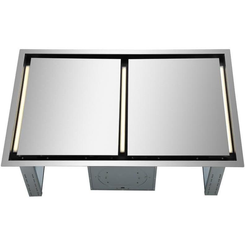 ๐๐๐ ๐๐๐๐๐๐๐๐: The 44″ Built-in Ceiling Range Hood is equipped with Easy access filters, Stainless Steel Finish, Six square bright white led lights, 1200 CFM (Double motor), Ducting: Combo โ Top & Back 3 ยผโ x 10″ Square. Also, the Power Cord, Bulbs, and Installation Kit included