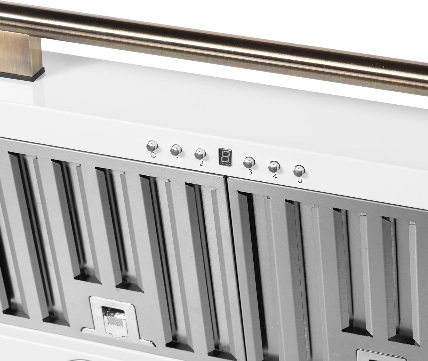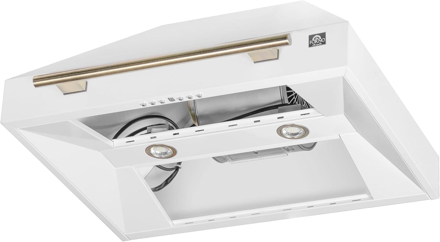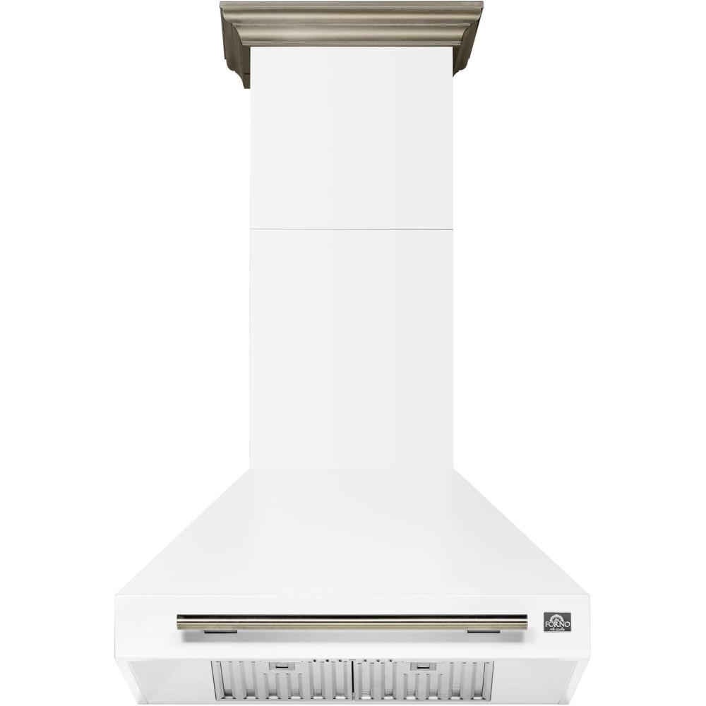 imageFORNO Aria 30quot 600 CFM Convertible Wall Mount Range Hood White Finish with Antique Brass Accents  LED Lighting Push Button Controls DishwasherSafe Baffle Filters Quiet Motor  FRHWM509530WHT