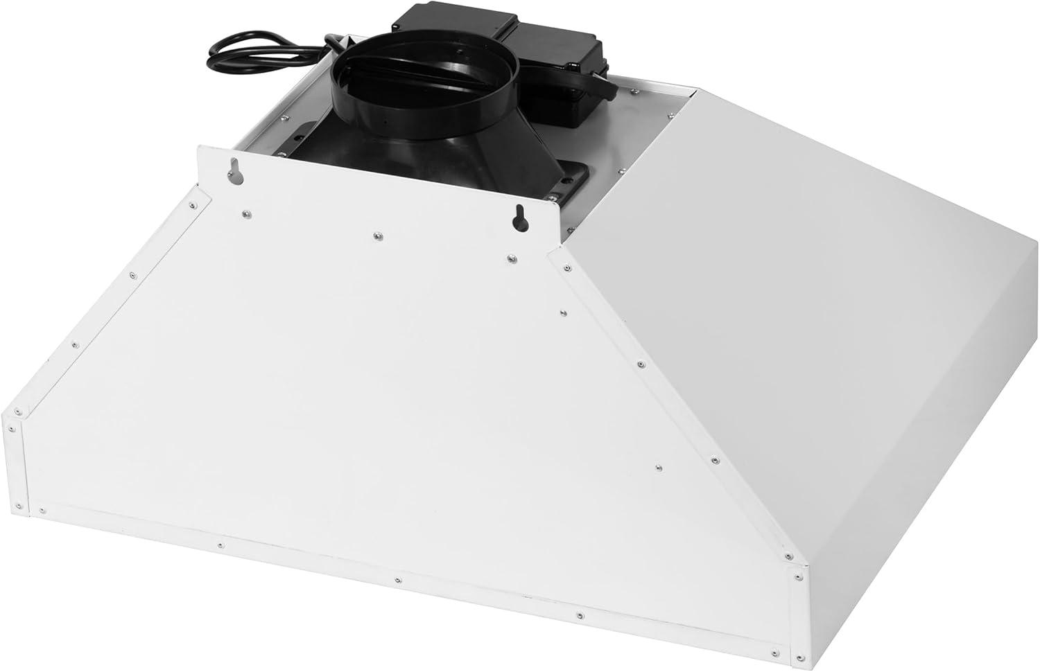 Enhance your kitchen’s air quality and style with the FRHWM5095-30WHT 30-Inch Wall-Mounted Range Hood, a perfect blend of elegance, power, and functionality. Finished in classic white with decorative crown molding and an included chimney extension kit, it provides a refined, built-in appearance that complements both modern and traditional kitchen designs. Equipped with a high-performance 600 CFM motor, this range hood effectively captures and removes smoke, steam, and airborne grease, ensuring a cleaner, fresher cooking environment. The four adjustable fan speeds let you fine-tune ventilation power for every task—from gentle simmering to high-temperature frying—while the vertical upward air discharge promotes optimal airflow and efficiency. Designed with everyday convenience in mind, the 30-Inch Wall-Mounted Range Hood offers removable, washable charcoal filters that simplify maintenance and keep performance at its best. The automatic shut-off timer adds an extra layer of ease and energy efficiency by powering down the unit after a set duration, making it ideal for busy households. Quiet yet powerful, this hood operates at just 65 decibels, maintaining a calm cooking atmosphere even when running at higher speeds. Integrated LED lighting illuminates your cooking surface for clear visibility, creating a more enjoyable and safer culinary experience. Flexible installation options make it easy to integrate into any kitchen layout—choose ducted venting for external air extraction or ductless recirculating mode with optional filters when exterior venting isn’t available. Every detail, from the sturdy construction to the premium white finish, reflects quality craftsmanship built to last. The wall-mounted range hood combines powerful suction, quiet operation, and a refined design to bring professional-grade ventilation and lasting beauty to your kitchen—an essential upgrade for a cleaner, brighter, and more comfortable cooking space.