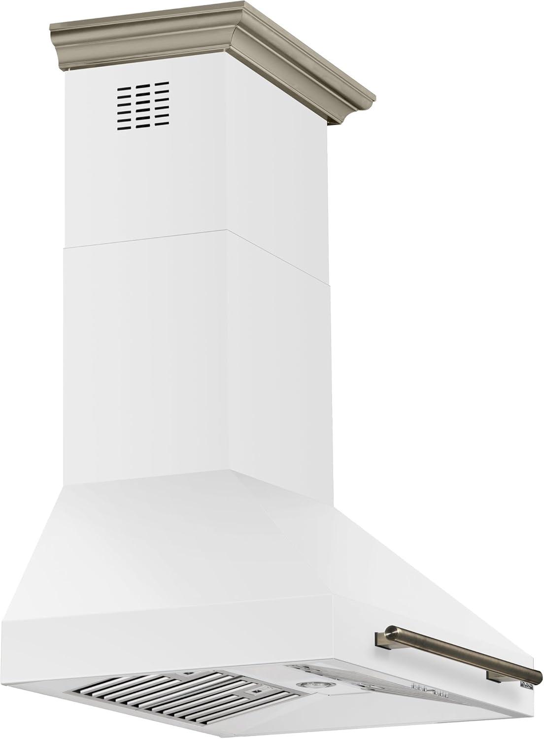 FORNO Aria 30" 600 CFM Convertible Wall Mount Range Hood, White Finish with Antique Brass Accents – LED Lighting, Push Button Controls, Dishwasher-Safe Baffle Filters, Quiet Motor – FRHWM5095-30WHT