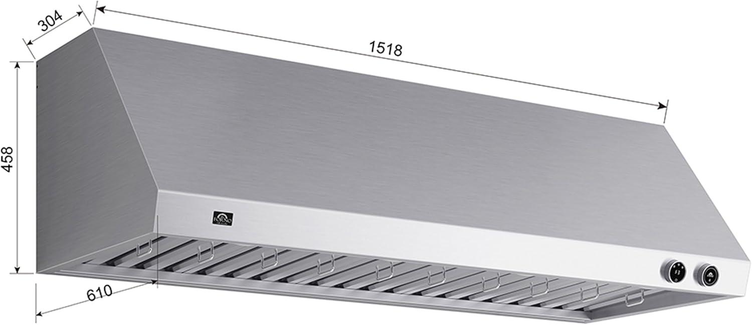 Durable Stainless-Steel Construction – Built from premium stainless steel, the FORNO Biagio 60'' range hood offers lasting durability and corrosion resistance. Its sleek finish complements modern kitchen designs while withstanding daily use. The sturdy material ensures long-term reliability and easy cleaning for a consistently polished appearance.