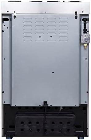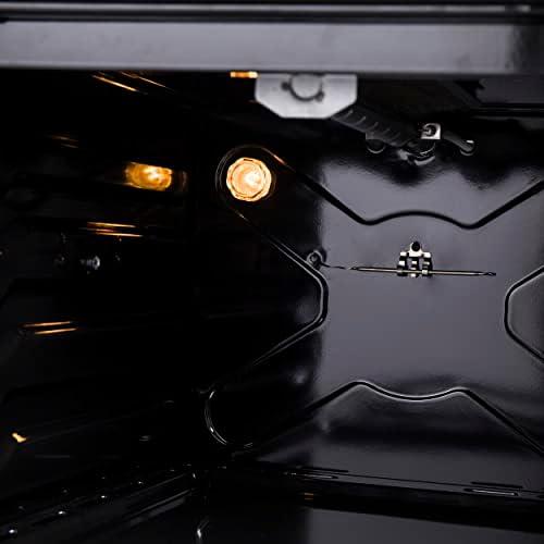 ๐๐๐๐๐๐๐: Housed in a high-grade #430 stainless steel body with a tempered 3-layer glass oven door and control knobs, this unit sports a stylish look that is built to last. Gas broil with reflect net (manual ignition), Gas oven (manual ignition), Oven lamp, Oven Safety, Cooling Fan, 2 baking racks electroplated, 1 baking tray+1 grid, Fingerprint Resistant, and Soft Door Close