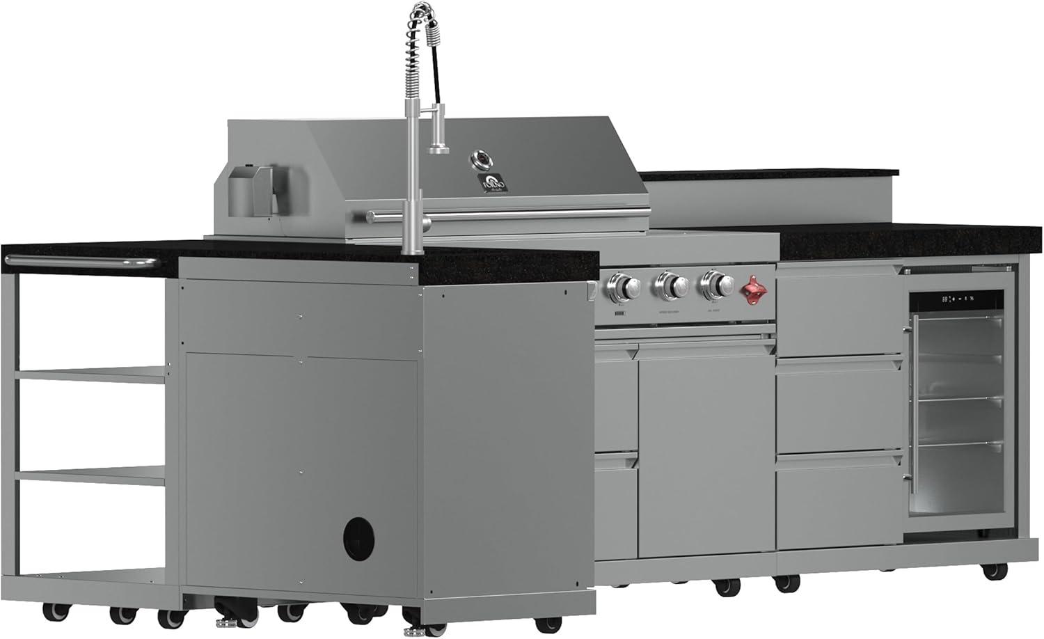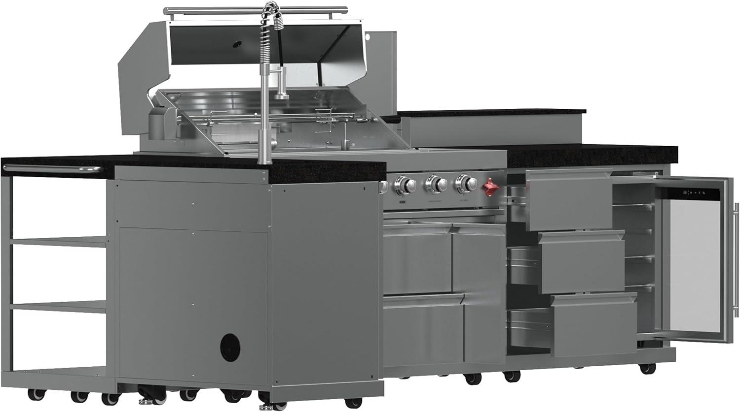 Modern & Durable Design – Built with 304 stainless steel burners and elegant white sintered stone countertops, combining long-lasting durability with sleek, contemporary style for your outdoor space.