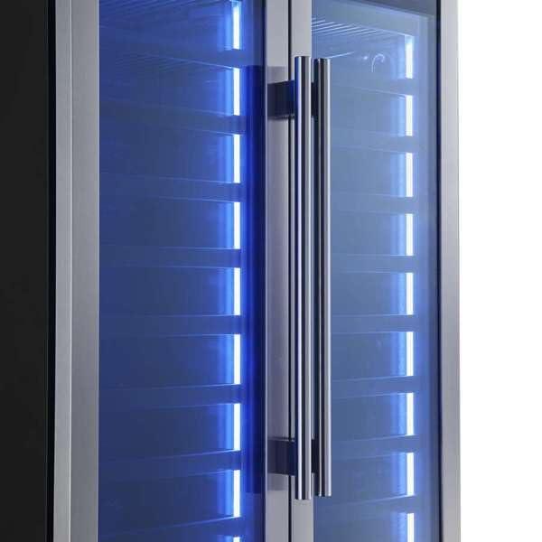 𝐁𝐔𝐈𝐋𝐓-𝐈𝐍 𝐃𝐄𝐒𝐈𝐆𝐍 𝐀𝐍𝐃 𝐀𝐃𝐃𝐈𝐓𝐈𝐎𝐍𝐀𝐋 𝐅𝐄𝐀𝐓𝐔𝐑𝐄𝐒: Designed for full built-in installation, this wine cooler offers a perfectly integrated look. The adjustable sliding shelves accommodate larger bottles, ensuring flexible storage for your wine collection