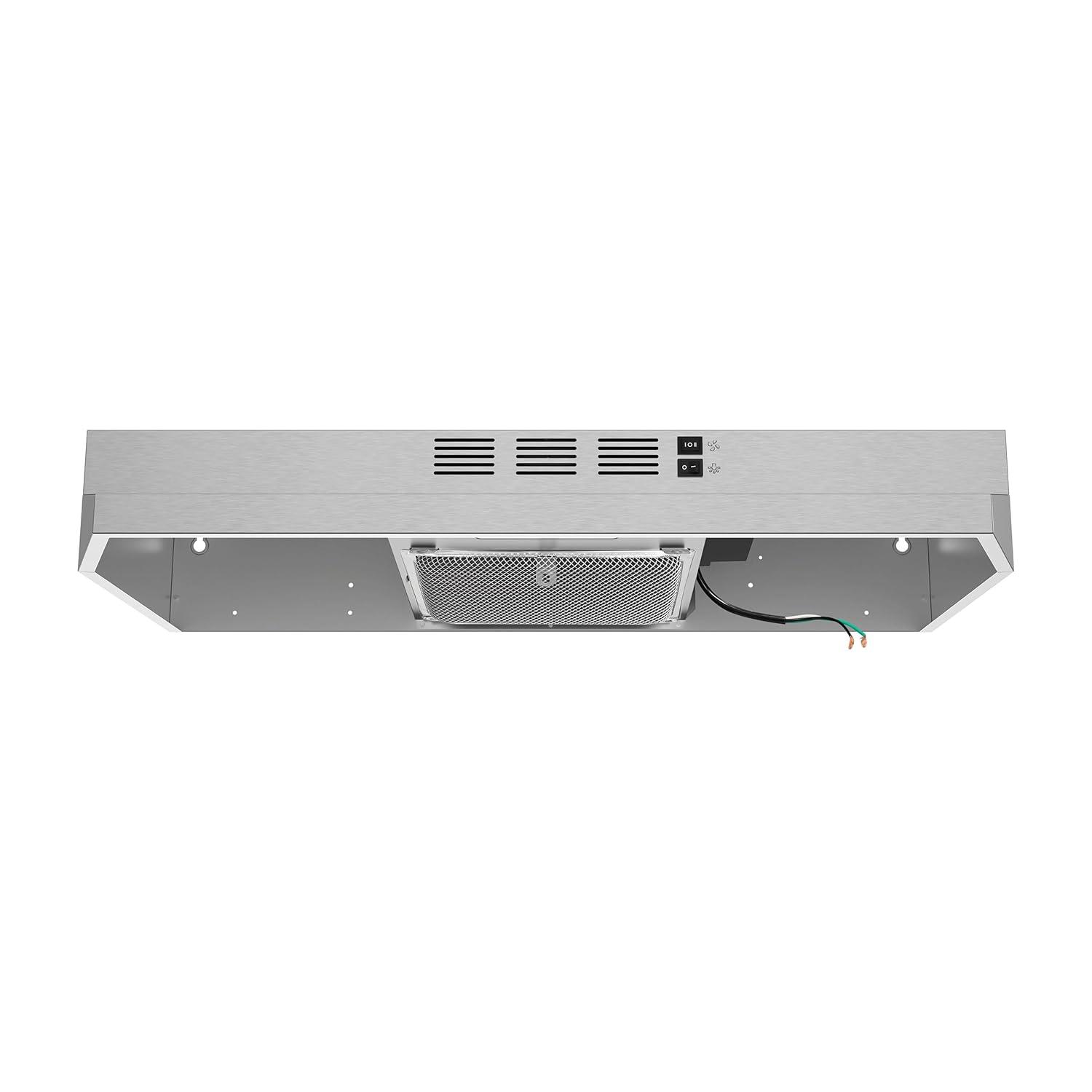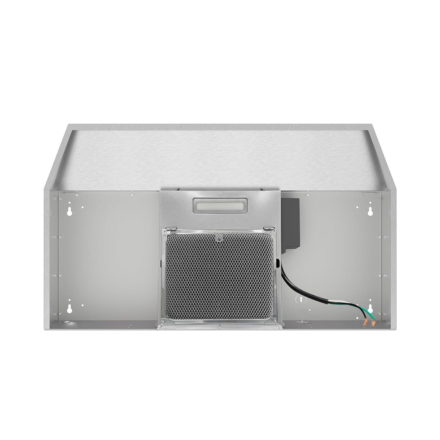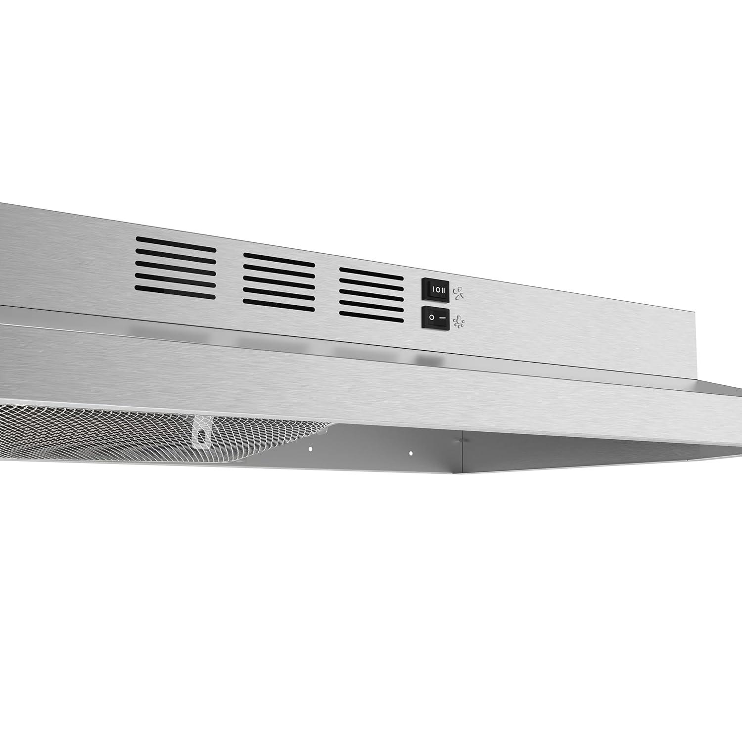 Slim Under Cabinet Design – With a low-profile 4.7-inch height, this hood fits discreetly beneath cabinets to maximize kitchen space without sacrificing performance. Ideal for compact kitchens, apartments, and condos, it provides a clean, seamless installation that blends with your cabinetry while maintaining powerful ventilation efficiency.