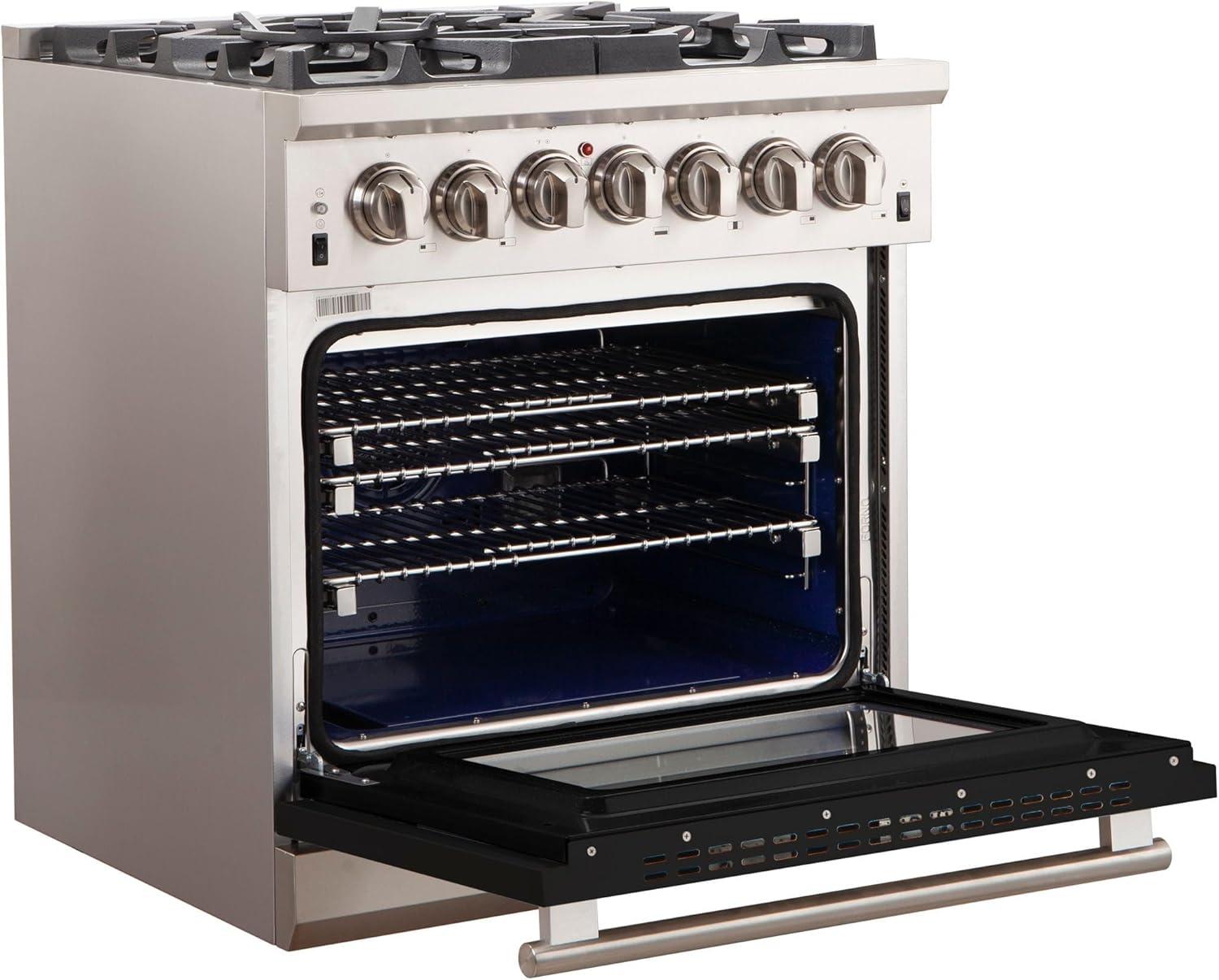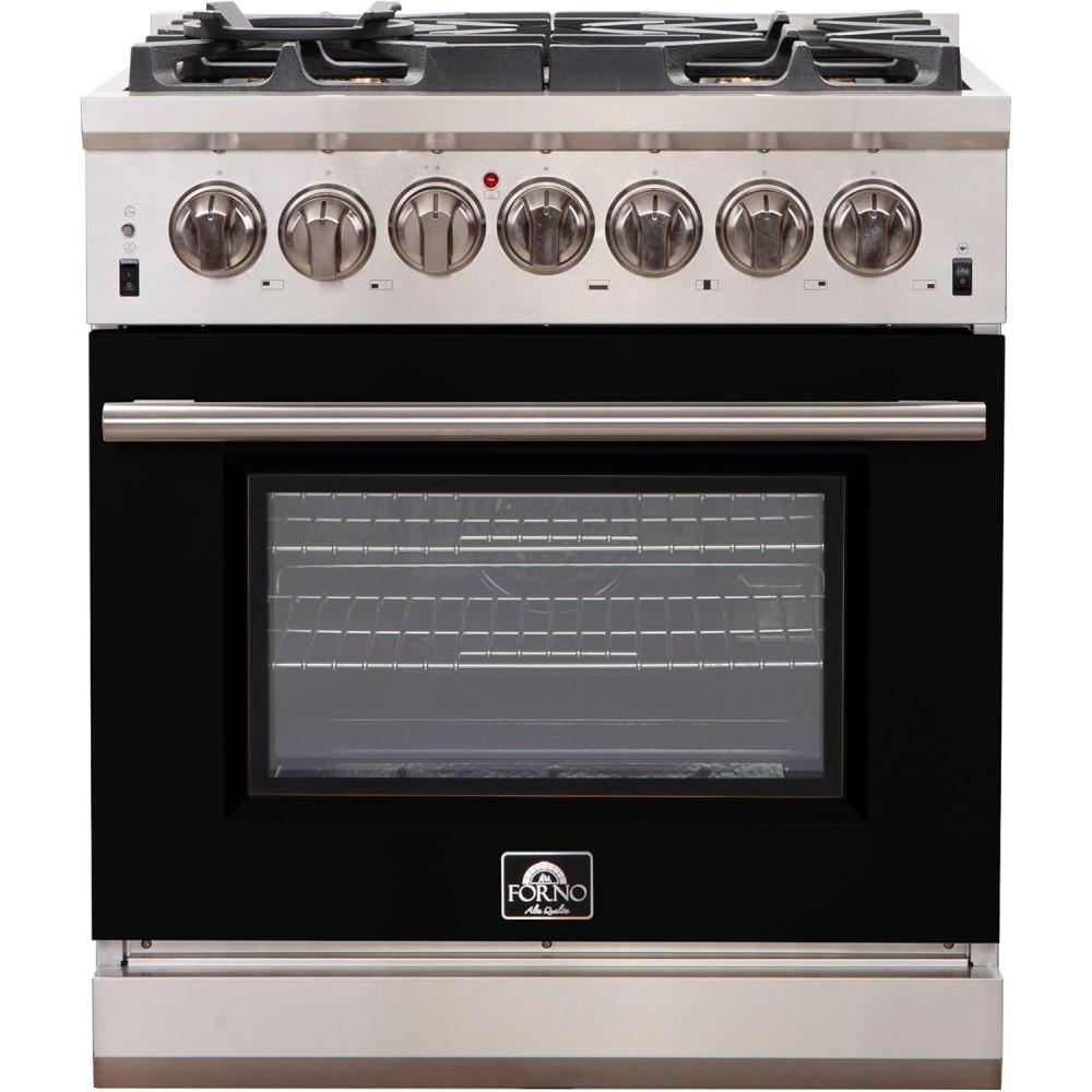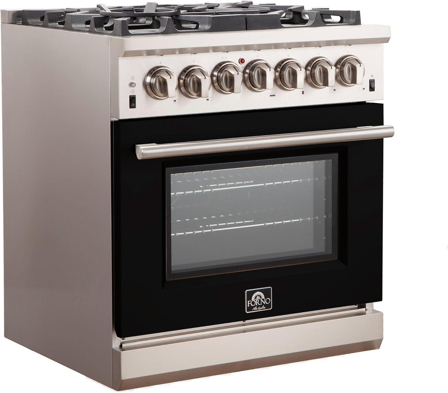 FORNO Capriasca 30" Gas Range, 4.32 Cu. Ft. Convection Oven with 5 Sealed Italian Burners – Full Gas Freestanding Range – Black Stainless Steel, Heavy-Duty Cast Iron Grates, FFSGS6260-30BLK