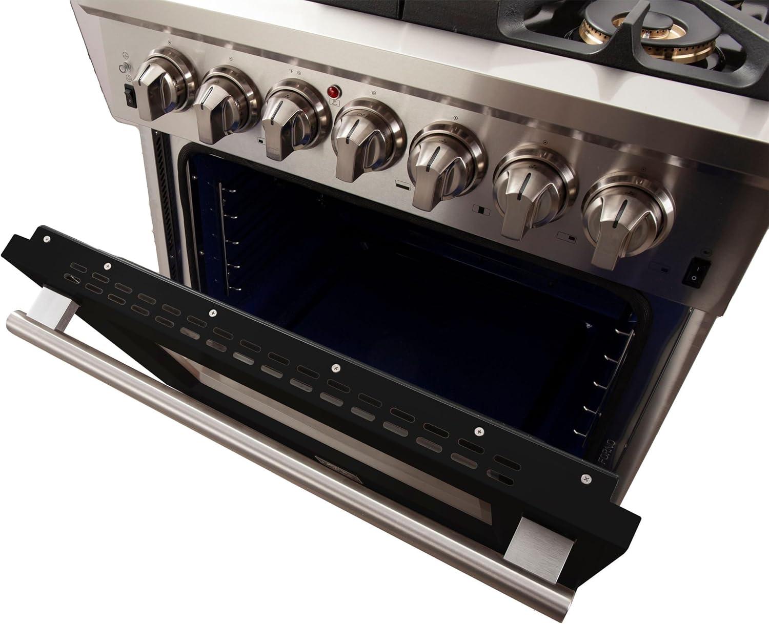 imageFORNO Capriasca 30 Gas Range 432 Cu Ft Convection Oven with 5 Sealed Italian Burners  Full Gas Freestanding Range  Black Stainless Steel HeavyDuty Cast Iron Grates FFSGS626030BLK