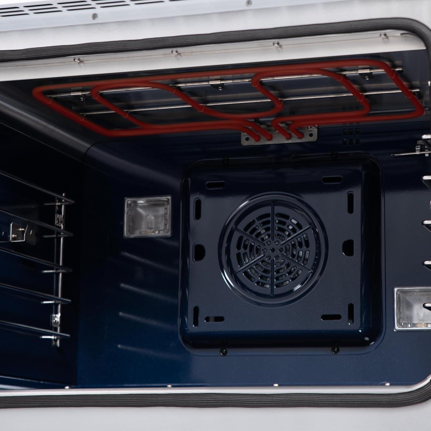 4.32 cu.ft. True Convection Oven, 6,300W – Electric oven with bake, broil, and convection functions; features a speckled blue enamel interior and triple-layer glass door window.