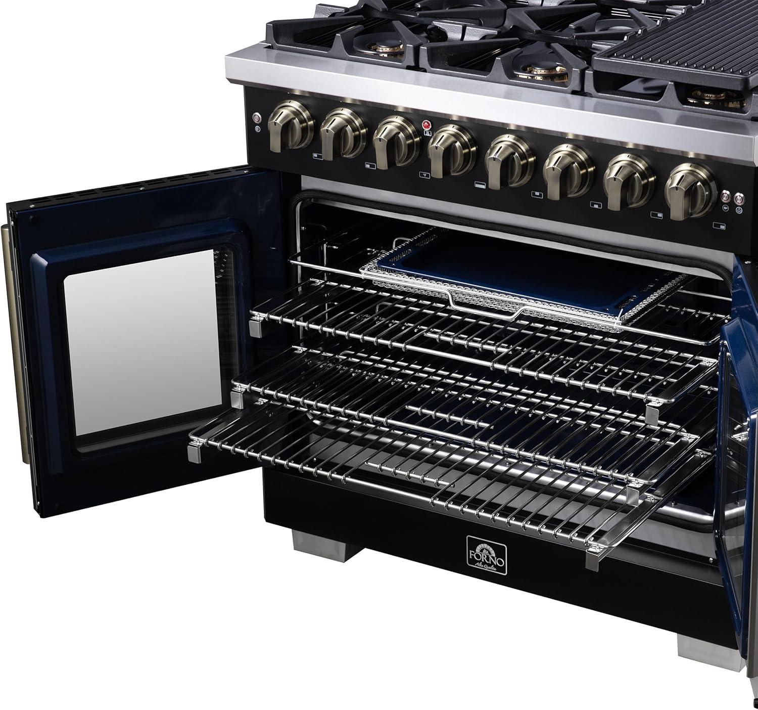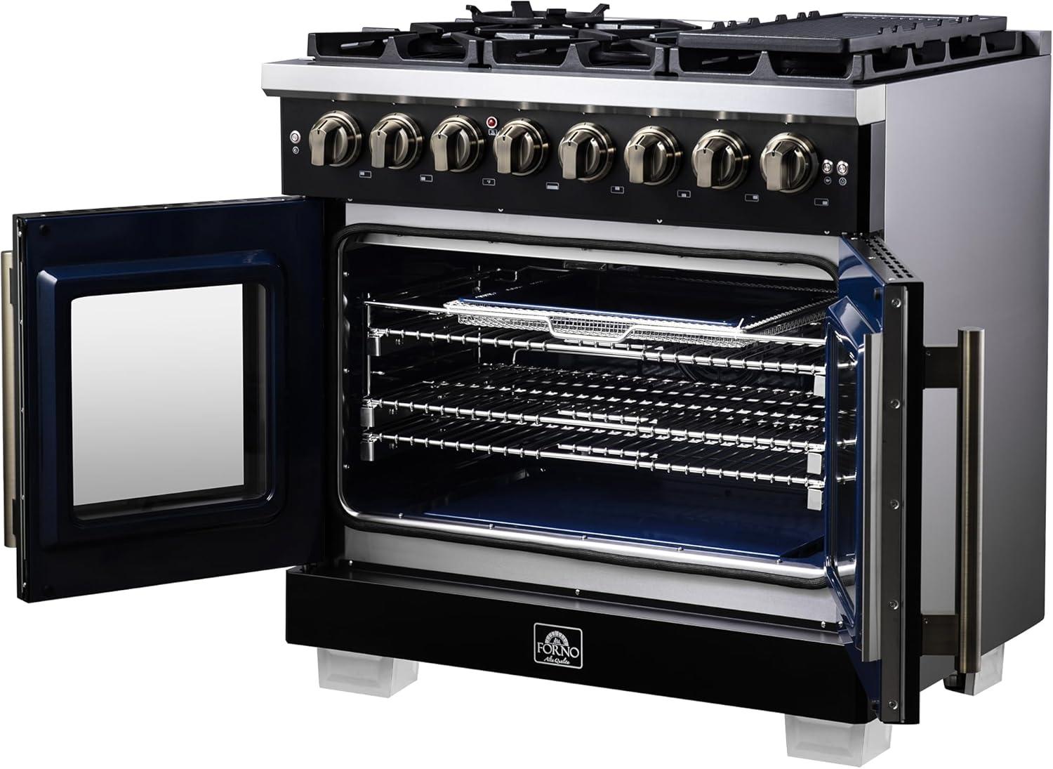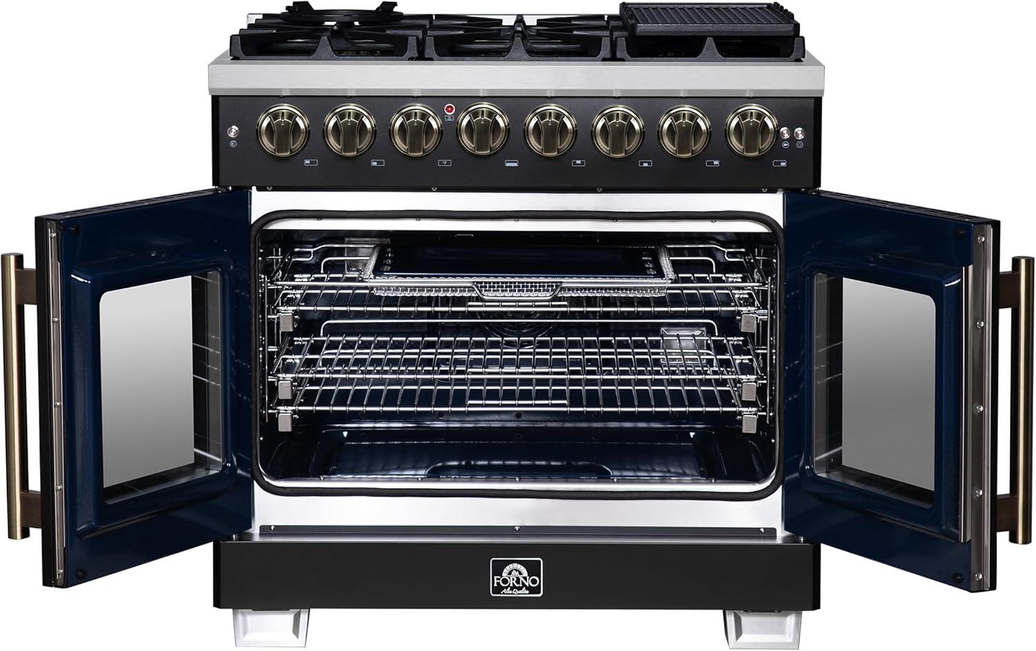 Complete Accessory Package Included – Comes with 3 telescopic oven racks, air fry basket with rack and drip pan, reversible griddle, wok support, rotisserie kit with skewers, LP conversion kit, and 4-prong power plug.