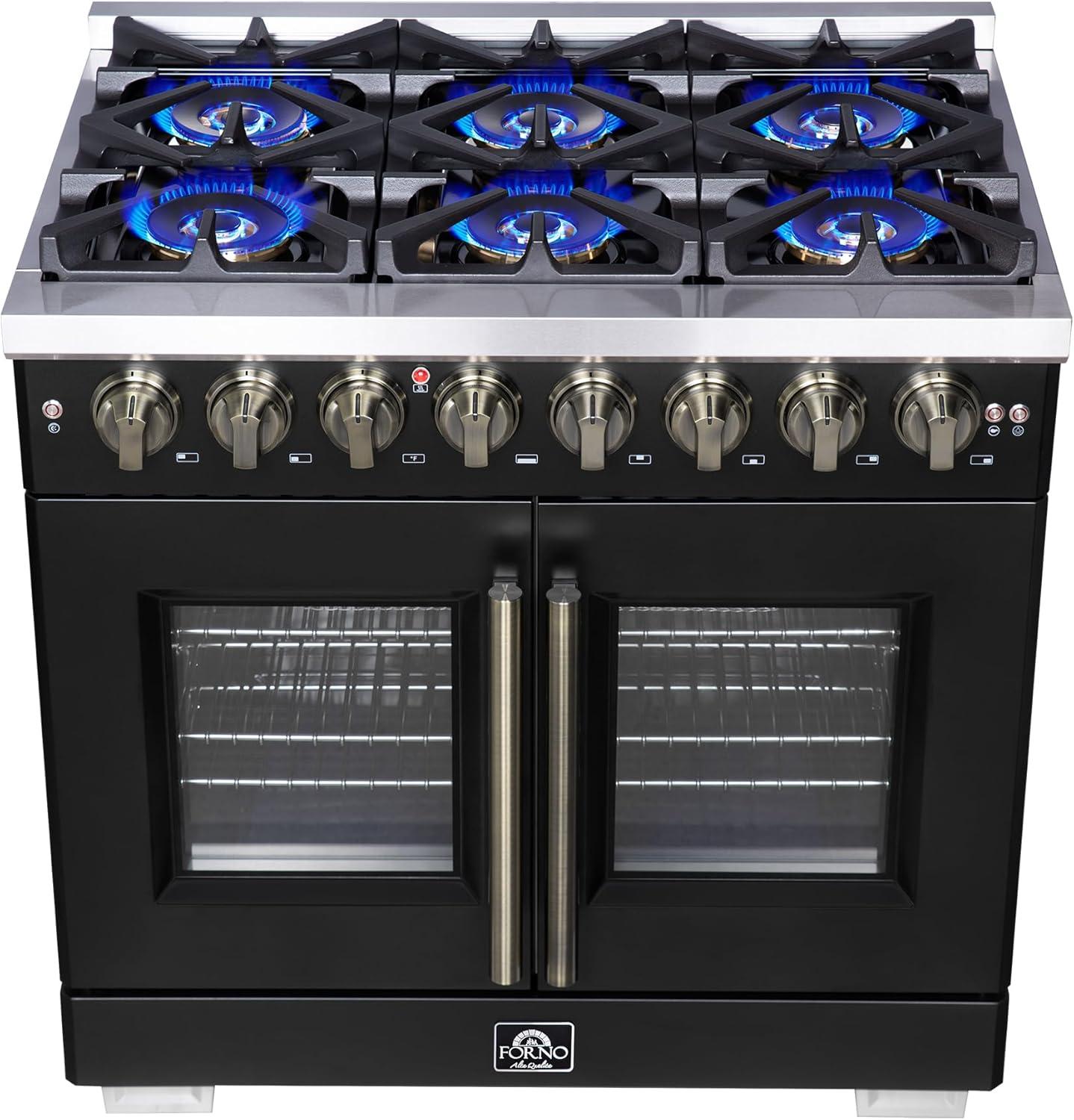 6 Sealed Dual-Ring Brass Burners – 120,000 BTU Total Output – Provides powerful high heat for searing along with gentle simmer control for sauces, soups, or melting chocolate.