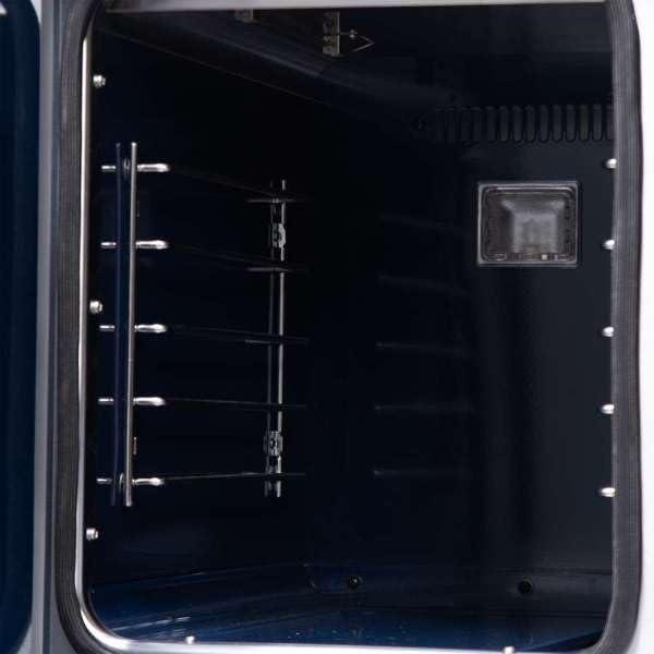 Durable & Easy-to-Clean Construction – Features a recessed black enamel cooktop cavity to contain spills, heavy-duty continuous cast iron grates for stability, and a blue speckled enamel oven interior designed for lasting durability and easy maintenance.