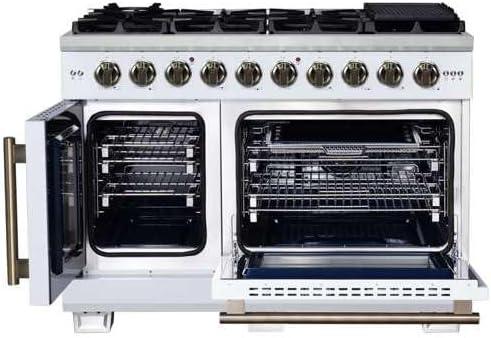 Professional 48-Inch French Door Design – Sleek black finish with insulated French doors and triple-layer glass windows provides durability, easier access to large dishes, and added safety with smooth friction hinges.