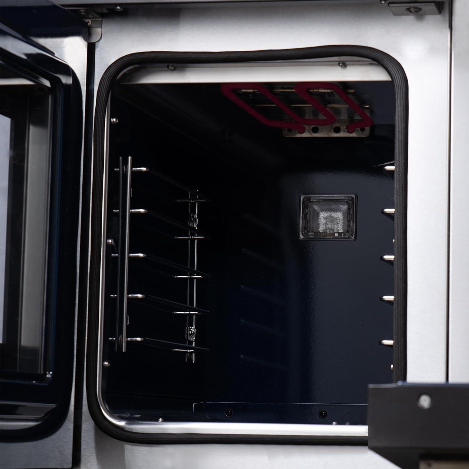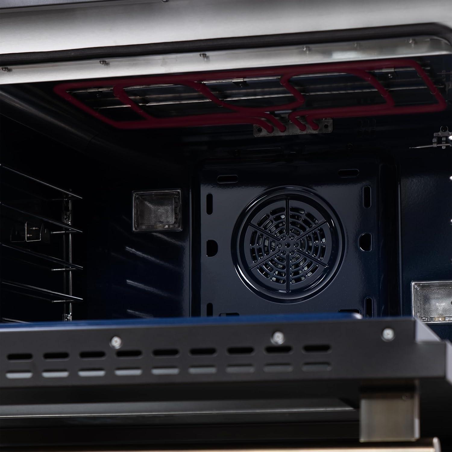 Premium Accessories Included – Includes 6 telescopic oven racks, air fry basket with rack and drip pan, rotisserie kit with skewers, wok ring, reversible griddle, and LP conversion kit.