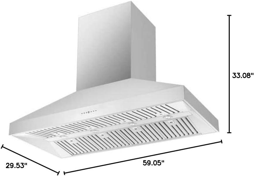𝐈𝐍𝐂𝐋𝐔𝐃𝐄𝐒: Forno offers this range hood 2 Year Factory Parts and Labor Warranty. Min Sones 2 and Max 16, Circuit Breaker 3.7 Amp, 440W, 120V, and ETL listings. Overall Dimensions 59.05″ W X 29.53″ D X 33.08″ to 52.17″ H, Weight 114.8 lbs and Carton Dimension 84.24″ W X 34.06″ D X 22.33″ H, Weight 176 lbs