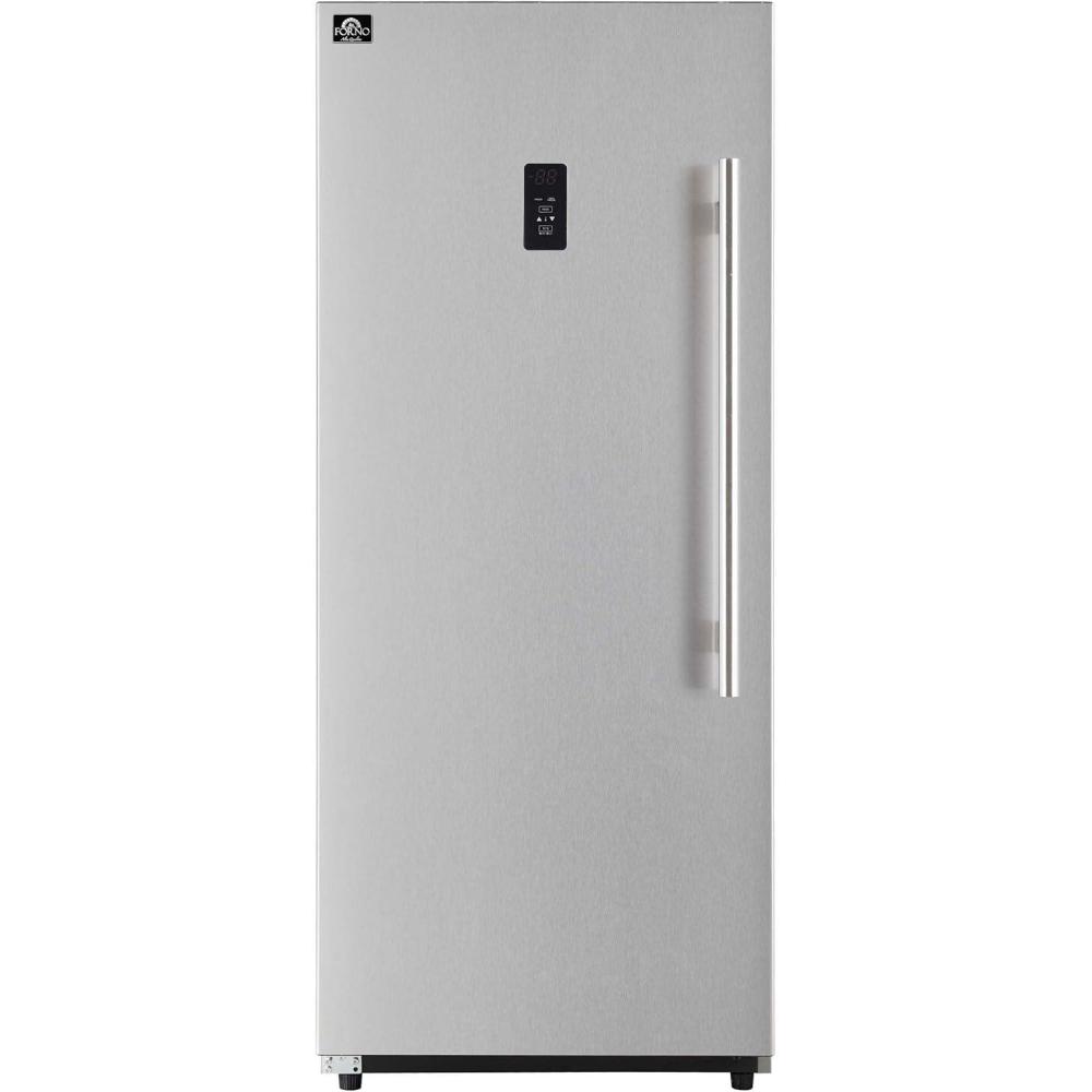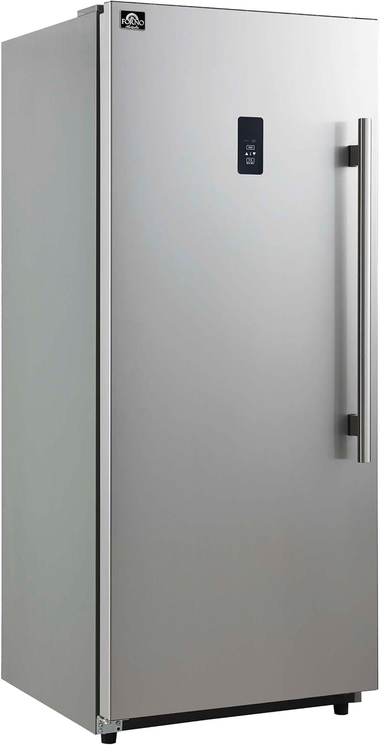 The Forno Fortezza 28-Inch Left-Swing Freezer combines professional-grade performance with modern convenience, making it an essential addition to any kitchen. Featuring Total No Frost cooling technology, it maintains steady interior temperatures and eliminates the need for manual defrosting, ensuring consistent freshness with minimal effort. Its spacious interior is designed with adjustable shelving, convenient door storage, and a galvanized steel-coated lining, offering both versatility and long-lasting durability. The digital control panel allows you to set and monitor temperatures precisely between -24°C and -14°C, while the Fast Freeze function rapidly locks in freshness for newly stored items. An automatic filtered ice maker provides a steady supply of crescent-shaped cubes, ensuring you always have ice on hand for drinks and entertaining. Built for performance and efficiency, this freezer weighs 157.60 lbs and measures 28 x 27.9 x 68 inches, offering generous storage capacity while fitting seamlessly into modern kitchen layouts. Experience peace of mind with every purchase—FORNO backs this appliance with a 2-year warranty on labor and parts, a testament to our commitment to quality, reliability, and long-term performance.