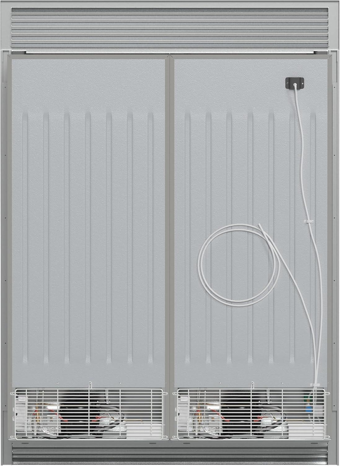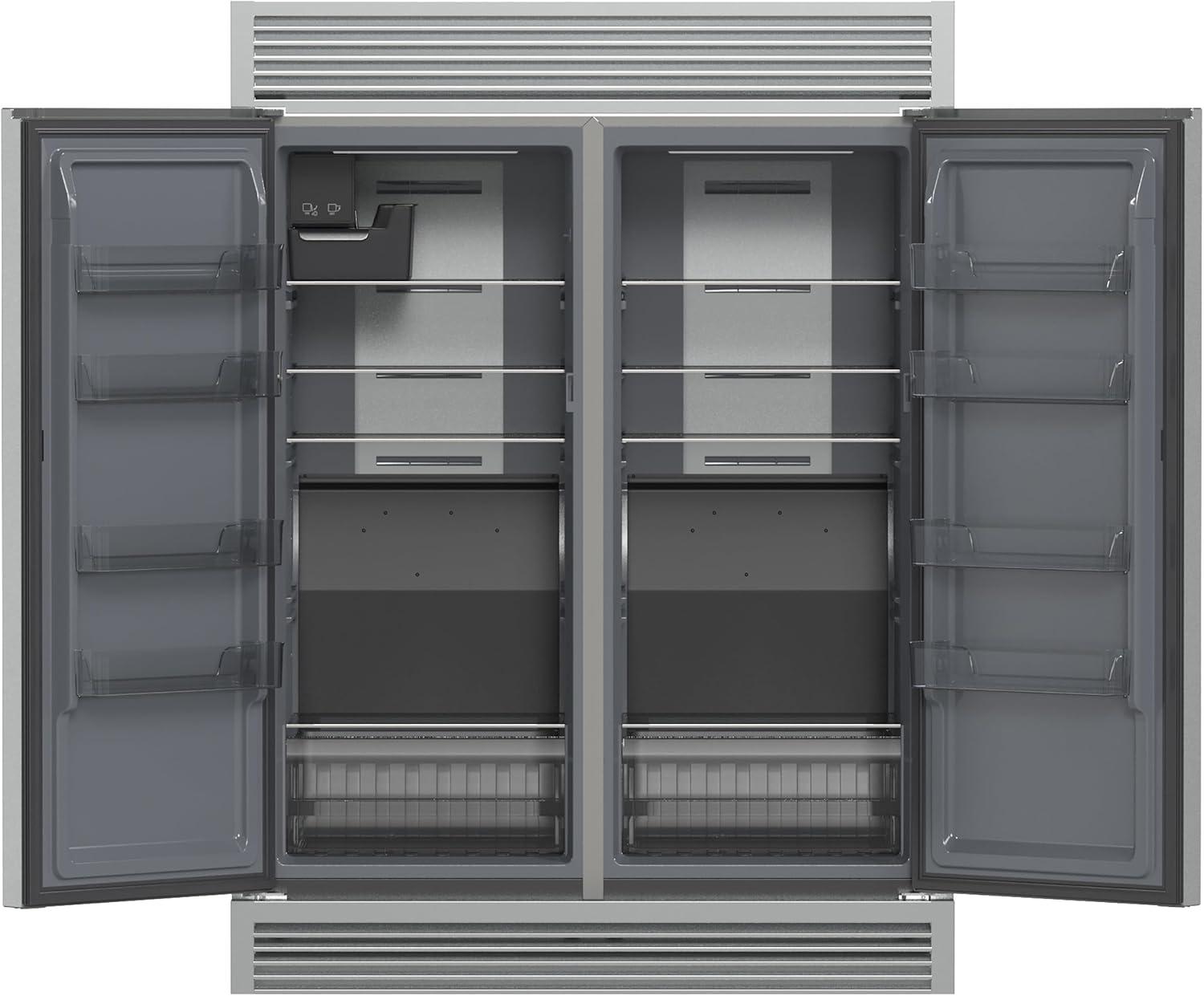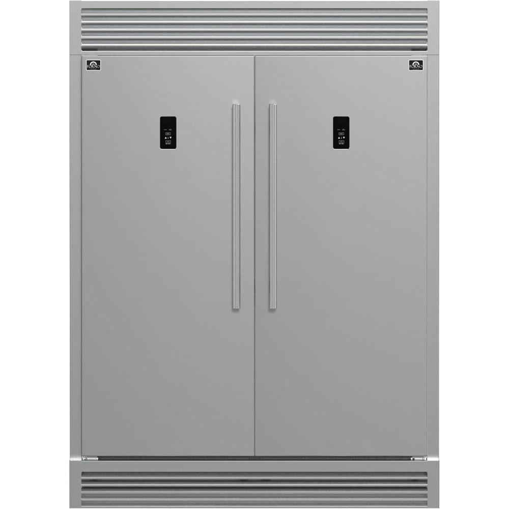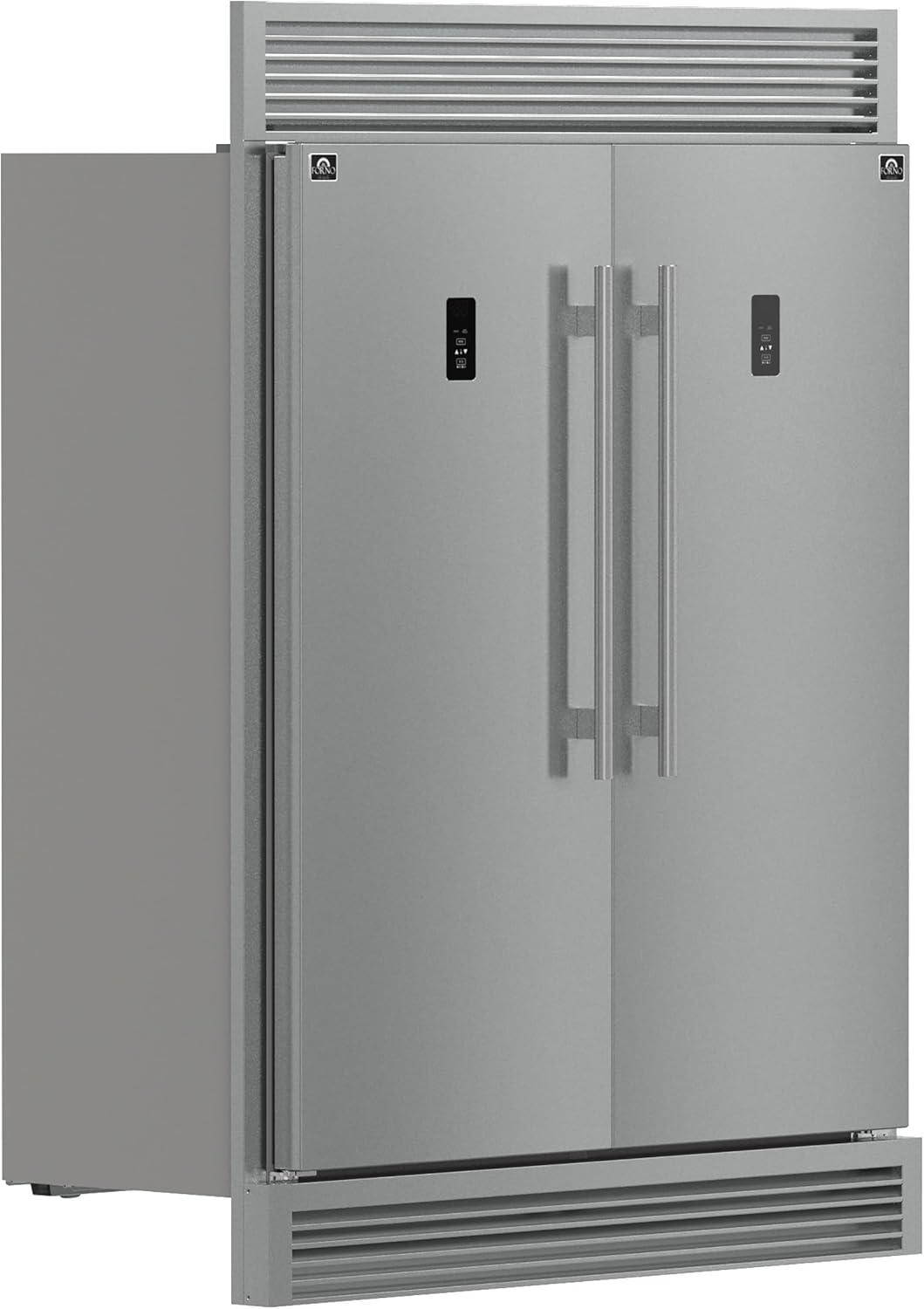 Upgrade your kitchen with the Forno Fortezza 60 Inch Convertible Refrigerator/Freezer with Trim Grill, a premium appliance built for flexibility, performance, and modern design. Featuring Total No Frost cooling, this unit prevents ice buildup while maintaining consistent airflow to keep your food fresher for longer. Inside, the galvanized steel-coated interior ensures long-lasting durability, while adjustable shelving and door storage provide customizable organization for everything from large trays to everyday essentials. The intuitive digital control panel allows precise temperature management, with a freezer range of -24°C to -14°C and a refrigerator range of 0°C to 8°C. Activate the Fast Freeze function to rapidly lock in freshness, ideal for preserving bulk groceries. An automatic filtered ice maker delivers crescent-shaped cubes on demand, so you’ll always have ice ready for family dinners or entertaining guests. Designed with counter-depth dimensions and a sleek stainless steel finish, the Fortezza blends seamlessly into your kitchen with a clean, modern look, whether installed built-in or freestanding. Backed by a 2-year warranty covering both labor and parts, Forno ensures long-term reliability and peace of mind with every purchase. Product Overall Weight (lbs): 315.20 Product Dimensions (W x D x H, inches): 56.2 x 27.9 x 68