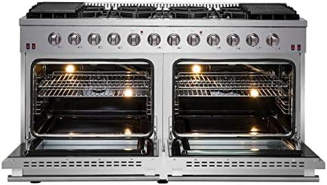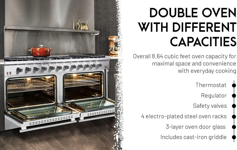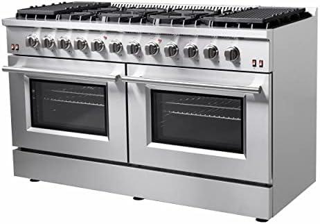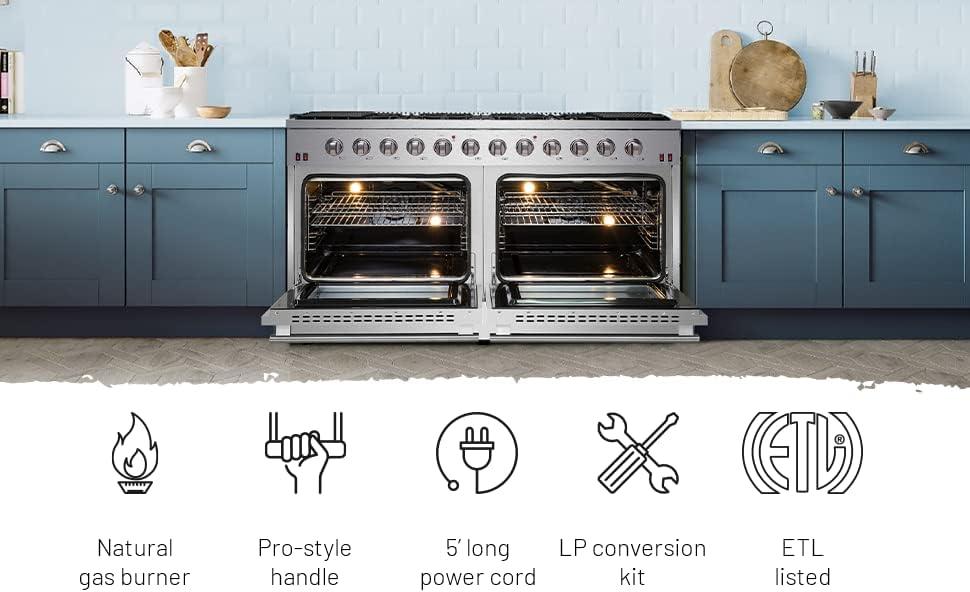 𝐈𝐍𝐂𝐋𝐔𝐃𝐄𝐒: All Forno products are backed by an iron-clad 2-year warranty for your satisfaction. The 60″ gas range and oven Total Net Capacity of 8.64 cubic feet, and each oven size of 4.32 cubic feet, 15A, 120 Voltage 60Hz, and ETL listings. The gas range Overall Dimensions W 60” x D 28”x H 37.4” 592 lbs and Carton Dimensions W 62.20” x D 30.39” x H 43.58” 592.8 lbs
