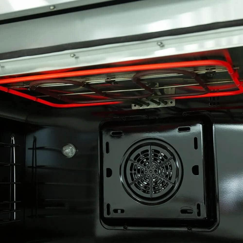 𝐎𝐕𝐄𝐍: Oven Capacity 30” is 4.32 cubic feet and 18” is 2.26 cubic feet. There are 4 Electro-Plated Steel Oven Racks. It also has a Black Enameled Oven Interior, 3 Glass Layers In the Door for Easy View and Quality, 3 Halogen Oven Lights, Oven Heat Gasket Mounted on Oven Frame, and U Tube Auto-Ignition. Oven Power: Broil Inside 1000 W Outside 1800W, Right Oven Bake Bake 2000 W, Left Oven Bake 1700W, and Dual Element Broil with True European Convection fan with 1500 Watt Element
