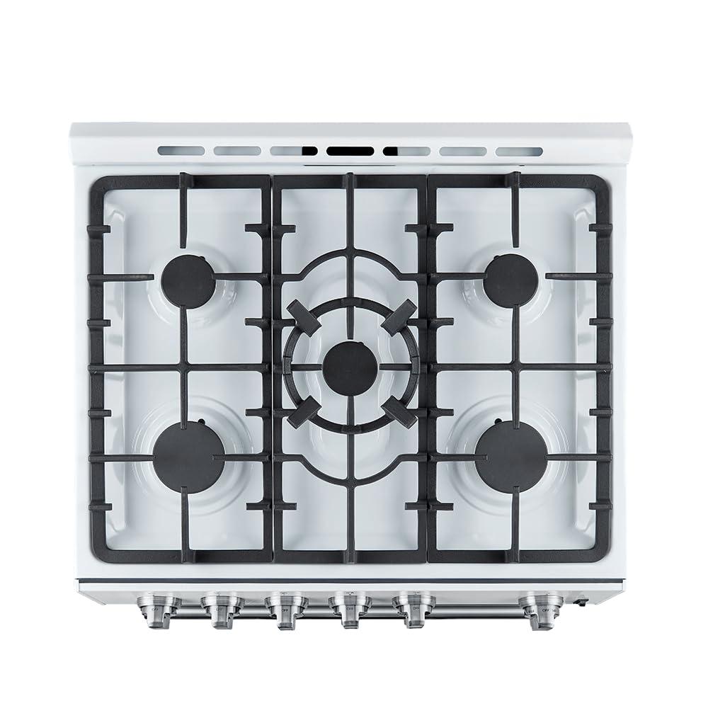 𝐏𝐎𝐖𝐄𝐑𝐅𝐔𝐋 𝐀𝐍𝐃 𝐕𝐄𝐑𝐒𝐀𝐓𝐈𝐋𝐄 𝐂𝐎𝐎𝐊𝐈𝐍𝐆: The 5 Sealed Burners deliver a total stove-top output of 39,500 BTU, while the 5 cu.ft Convection Oven boasts a 22,500 BTU total broil and bake output, ensuring powerful and efficient cooking