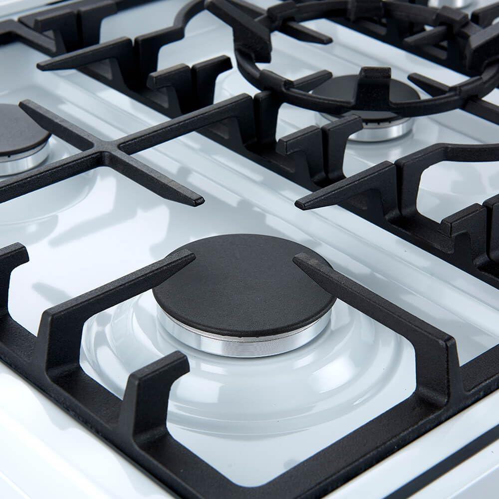 𝐃𝐔𝐑𝐀𝐁𝐈𝐋𝐈𝐓𝐘 𝐀𝐍𝐃 𝐄𝐀𝐒𝐘 𝐓𝐎 𝐂𝐋𝐄𝐀𝐍: Continuous Cast Iron Grates provide even heat distribution and stable cookware mobility, while the Deep Recessed Cavity of the Black Enamel Range Top contains spills for quick clean-ups. The stainless steel finish adds a durable and easy-to-clean surface