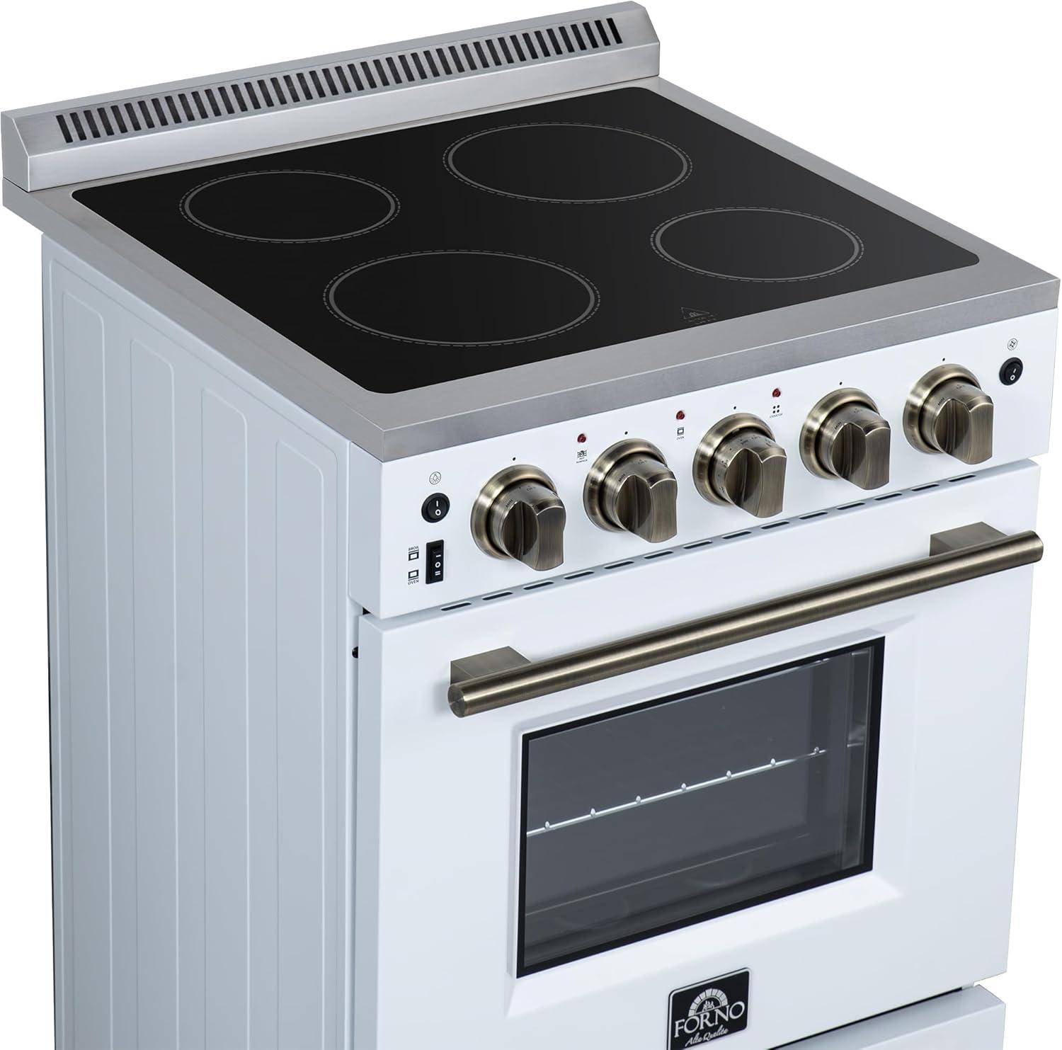 Forno Loiano 24-Inch Freestanding Electric Range with Antique Brass Knobs & Handle, Storage Drawer, 4 Burner Elements, 2.3 cu.ft. Oven Capacity with Adjustable Legs for Level Installation - White