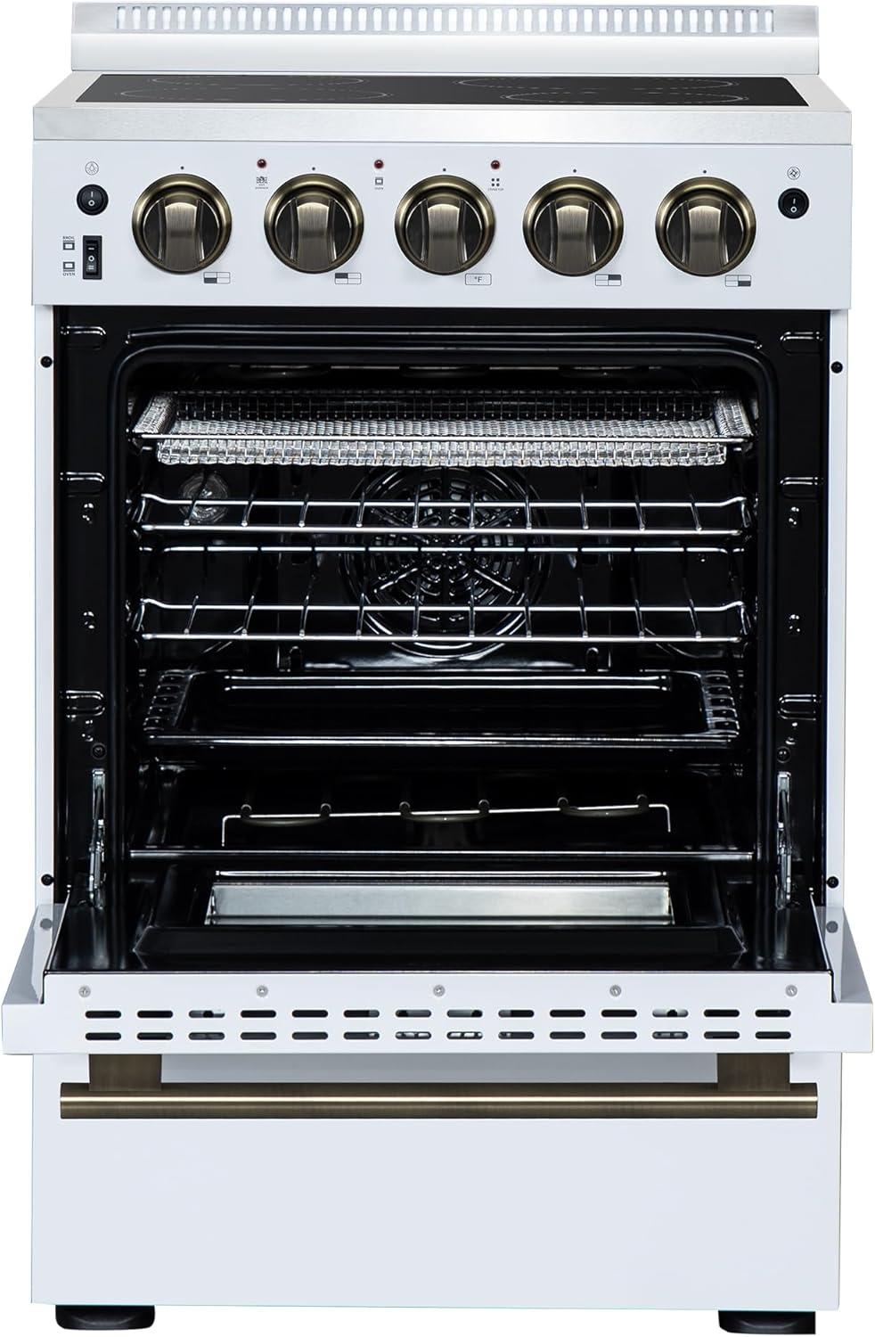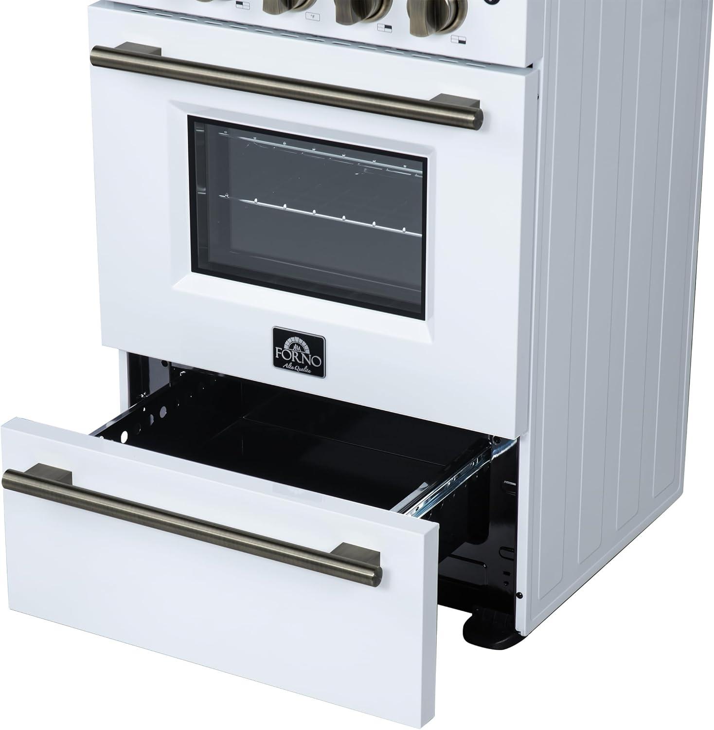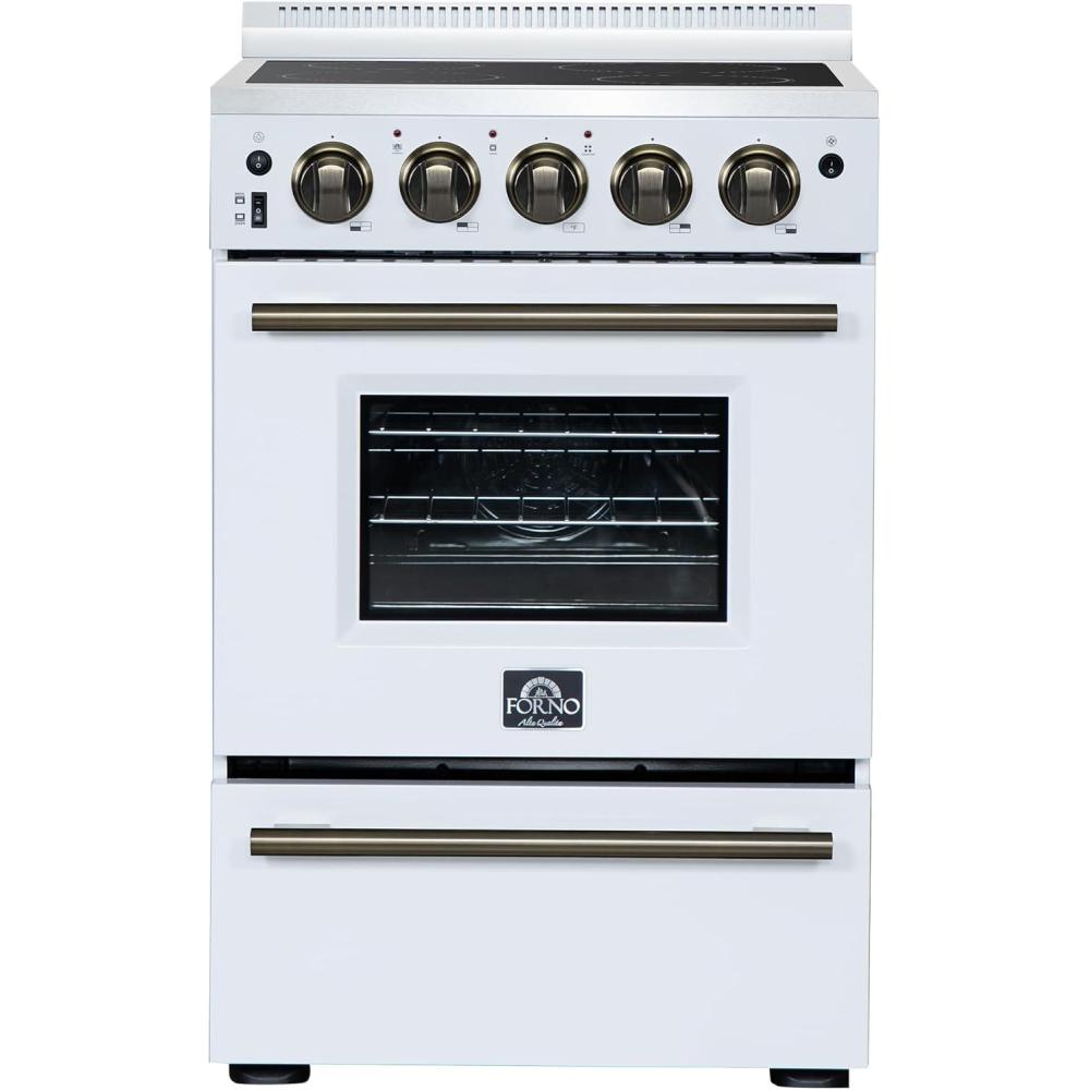 Forno Loiano 24-Inch Freestanding Electric Range with Antique Brass Knobs & Handle, Storage Drawer, 4 Burner Elements, 2.3 cu.ft. Oven Capacity with Adjustable Legs for Level Installation – White