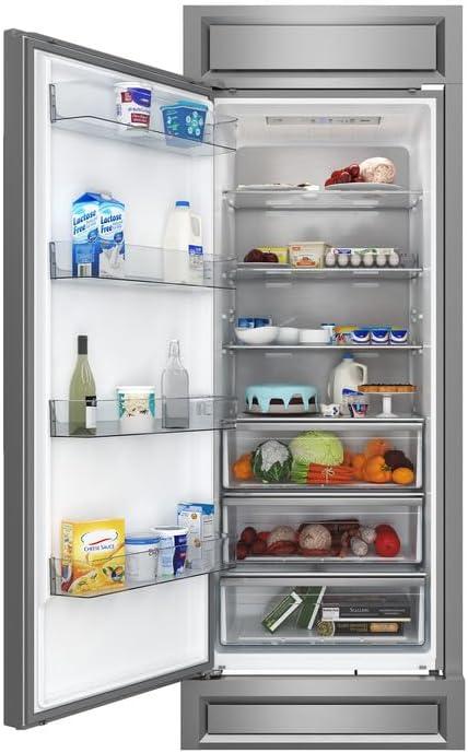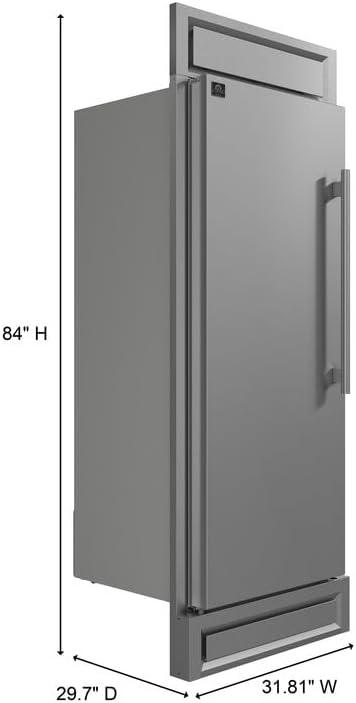 The Forno Maderno 28-Inch Convertible Refrigerator with a 13.6 cu.ft. capacity is designed to deliver both functionality and style. Upgraded with a decorative grill that extends the width to 32 inches, it creates a seamless built-in look that blends effortlessly into any modern kitchen. Its convertible function allows you to switch between refrigerator and freezer modes with ease, while Total No-Frost Technology eliminates the need for manual defrosting. The Metal Multi-Airflow System ensures consistent cooling throughout, keeping your groceries fresh for longer. Inside, you’ll find 3 glass shelves, 3 plastic drawers with silver trims, and convenient plastic door balconies, offering flexible organization and plenty of storage. Brilliant LED lighting makes every corner visible, while the electronic touch control panel allows precise temperature management, including switching between Fahrenheit and Celsius. Built for durability, this model features a VCM door panel, metal back, and swing door design, ensuring long-lasting performance. With overall dimensions of 31.81″ W x 29.7″ D x 84″ H and a weight of 165 lbs, it’s engineered for reliable performance and a sleek kitchen fit. Every FORNO appliance is backed by a 2-year warranty covering parts and labor, giving you peace of mind with a product that combines quality, performance, and timeless design.