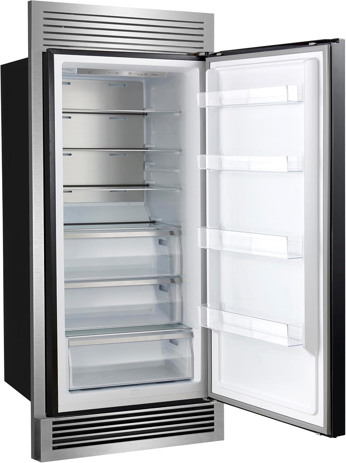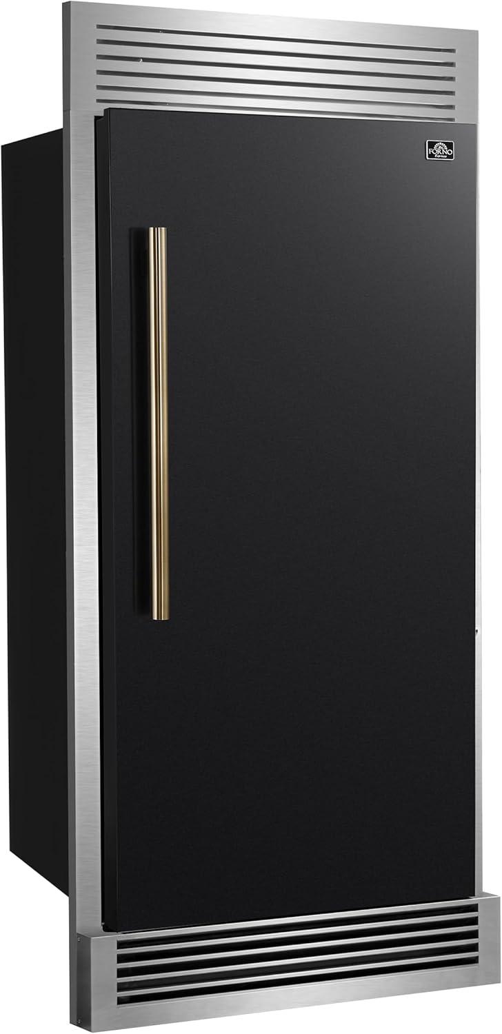 Upgrade your kitchen with the Forno Maderno 28-Inch Refrigerator, designed to combine elegant style with everyday functionality. Featuring a decorative grill that extends its width to 32 inches, this refrigerator achieves the sleek appearance of a built-in appliance for seamless kitchen integration. With a 13.6 cu. ft. capacity and a Convertible Cooling Zone, you’ll enjoy the flexibility to switch between refrigerator and freezer modes to suit your storage needs. Total No-Frost Technology eliminates the hassle of manual defrosting, while the Metal Multi-Airflow system ensures even cooling throughout, preserving freshness for all your groceries. Inside, thoughtful organization is made simple with 3 glass shelves and 3 drawers with silver trims, providing ample space for fresh produce, beverages, and frozen goods. A swing door design and intuitive electronic touch control panel bring everyday convenience, while VCM doors and a metal back panel add durability and a polished finish. Product Details: Dimensions (W x D x H): 27.6″x29.7″x67.7″ Overall Weight: 172 lbs Backed by a 2-Year Warranty covering both labor and parts, FORNO appliances deliver peace of mind, ensuring you can trust in their quality, performance, and long-lasting reliability.