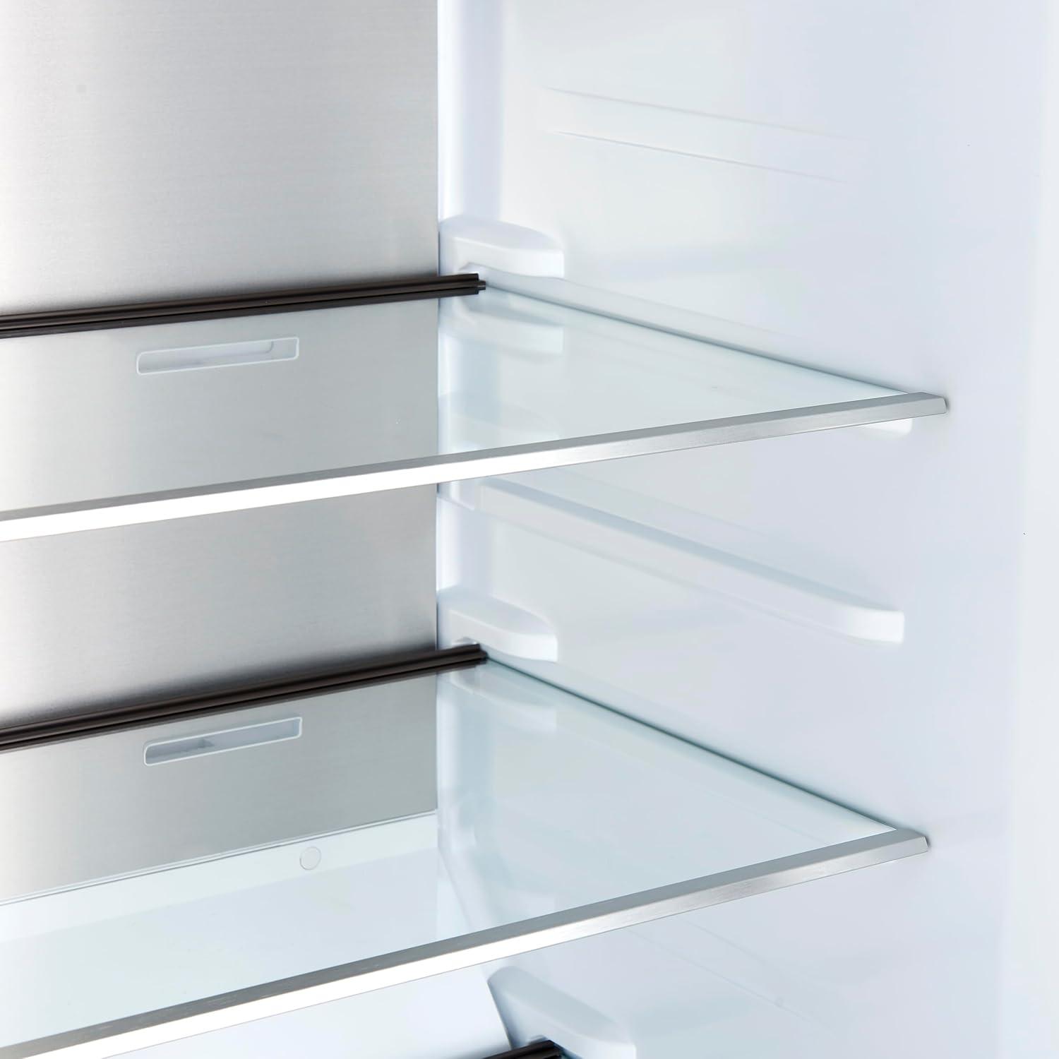 13.6 cu.ft. Organized Interior – Features 3 adjustable glass shelves, 4 door bins, and 3 removable drawers with silver trims for flexible, well-structured food storage.