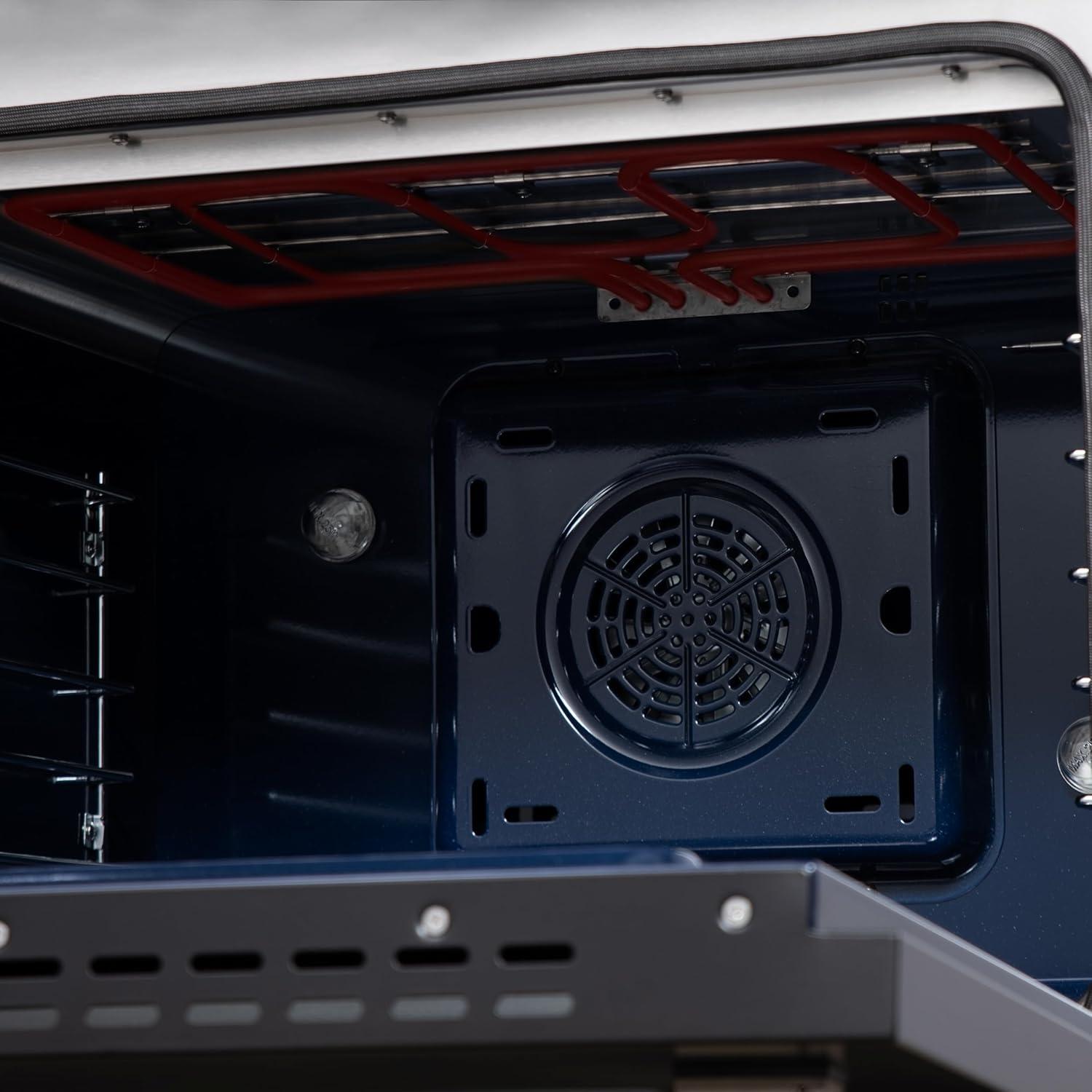 Healthier & Convenient Cooking – Includes an air fryer basket for oil-free crispy meals, plus a manual steam-clean function and a speckled blue enamel oven interior for effortless maintenance and a stylish finish.