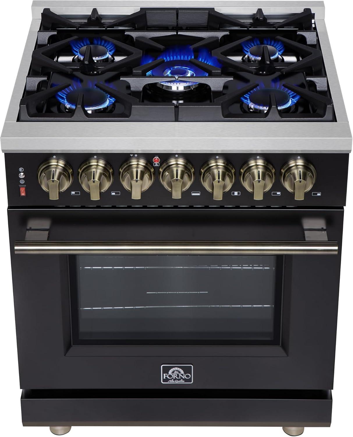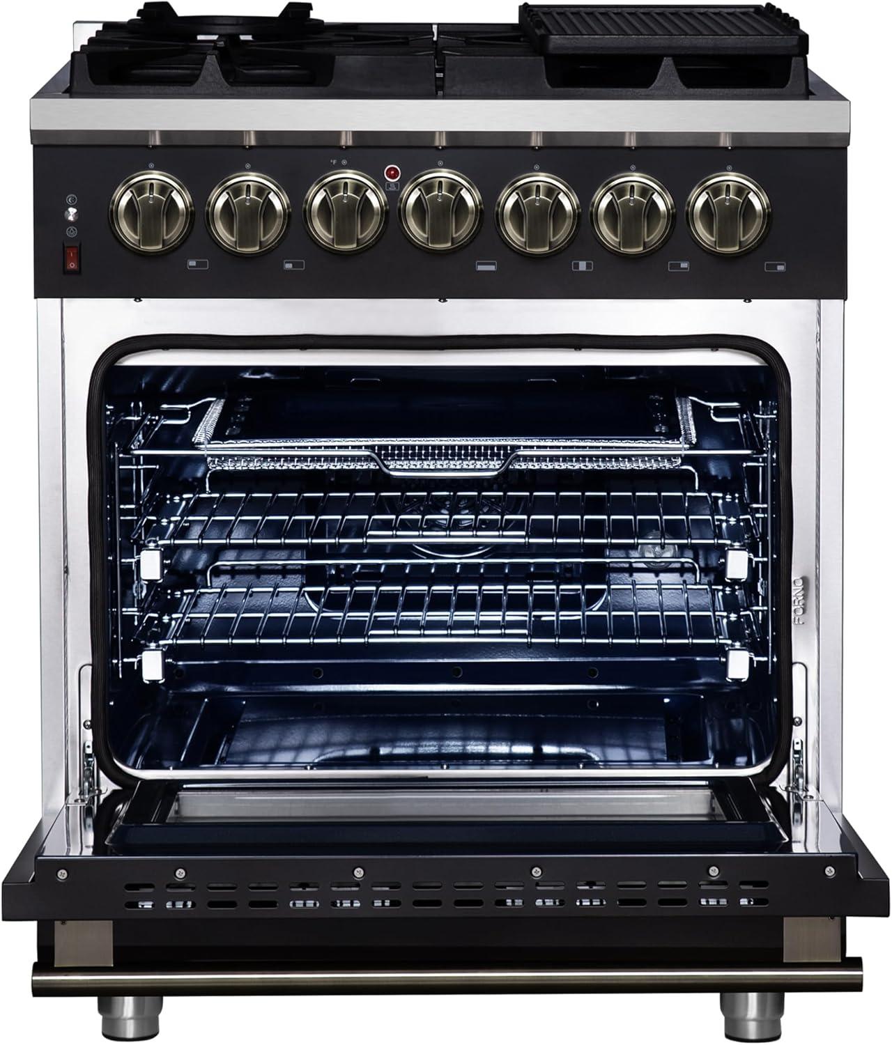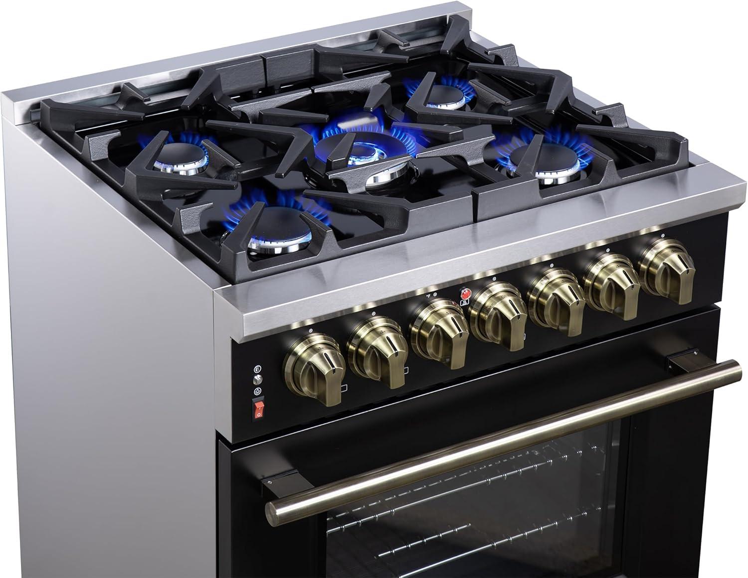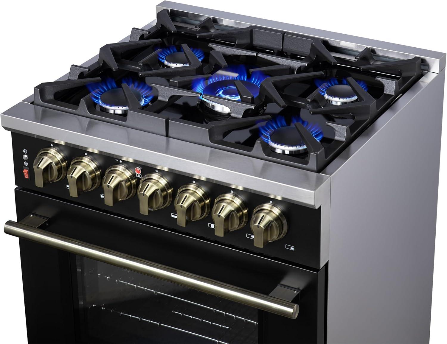 Elegant Design & Durability – Finished in sleek black with antique brass trim accessories, this premium range combines timeless style with heavy-duty construction, backed by a 2-year warranty on parts and labor for peace of mind.