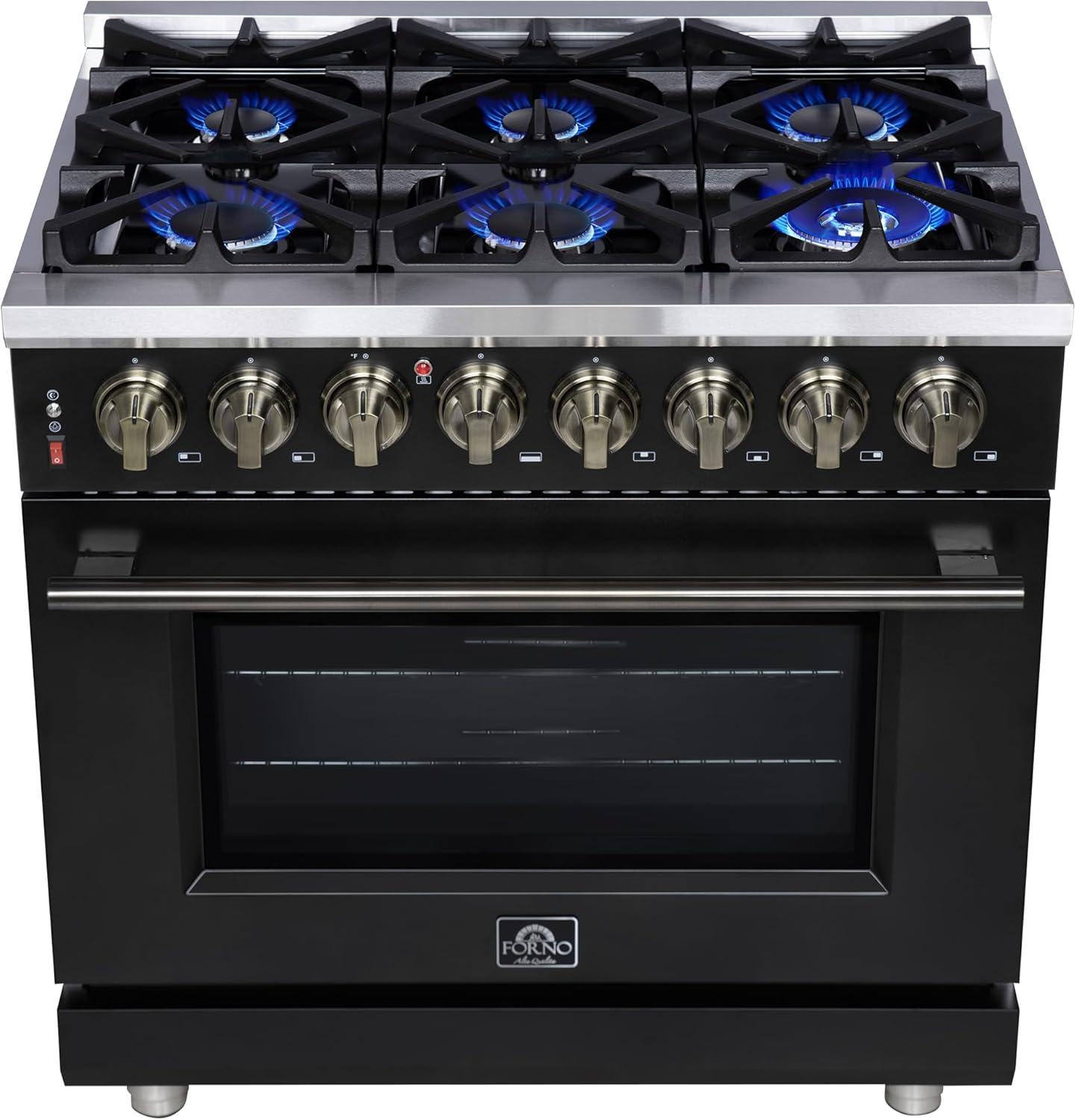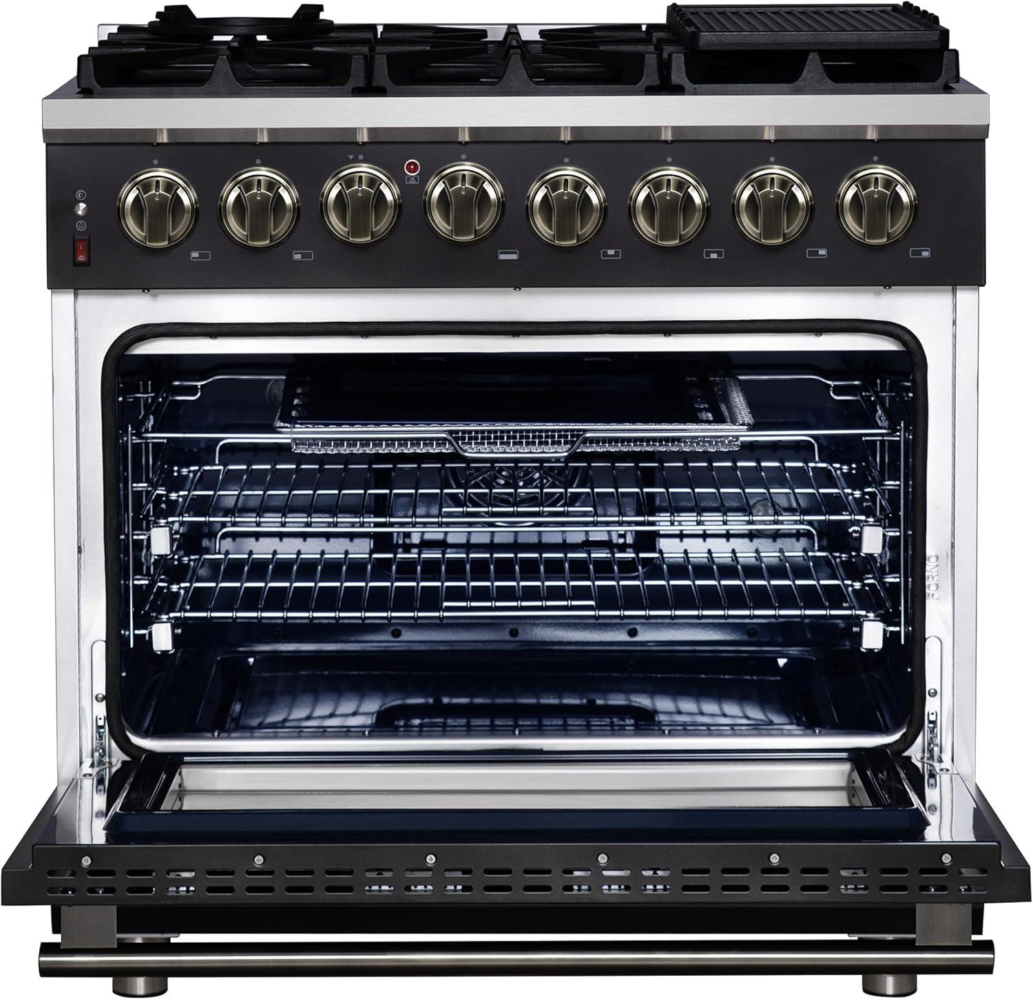 Powerful & Versatile Cooking – Equipped with six sealed gas burners, a removable griddle, and a wok support ring, this dual fuel range delivers precise control for boiling, sautéing, searing, and stir-frying. Durable matte cast iron grates provide stable support for all cookware.
