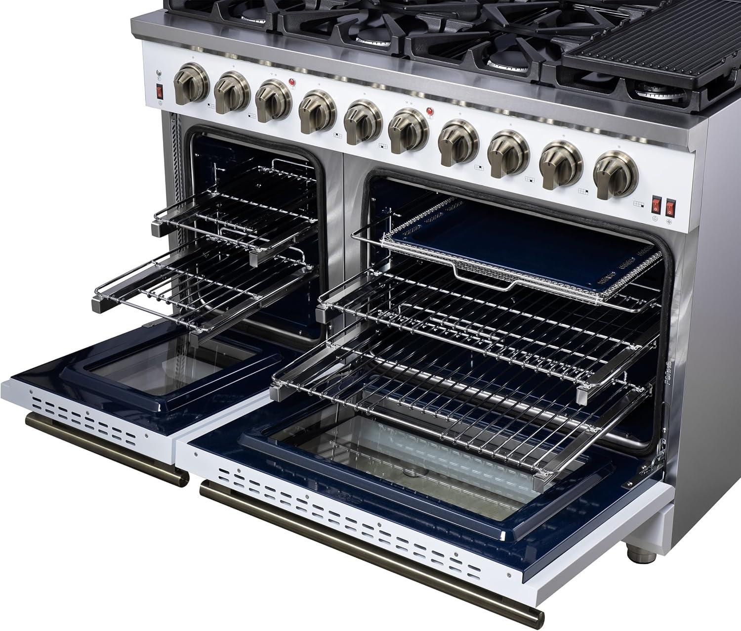 imageFORNO Massimo 48Inch Freestanding Gas Range with Antique Brass Accents amp 8 Sealed Burners  432 cuft Convection Oven  226 cuft Secondary Oven wAir Fryer Kit amp Wok Support  White