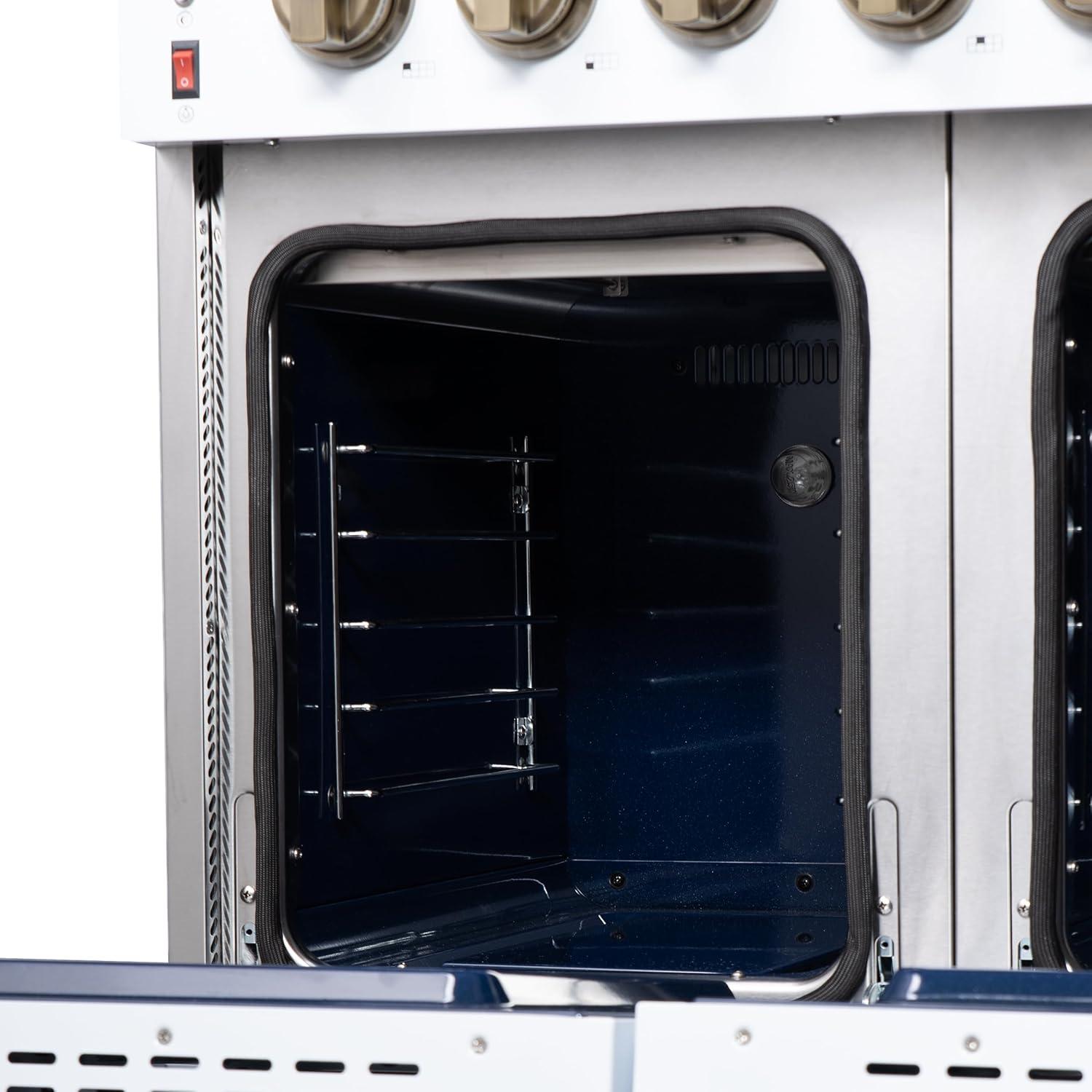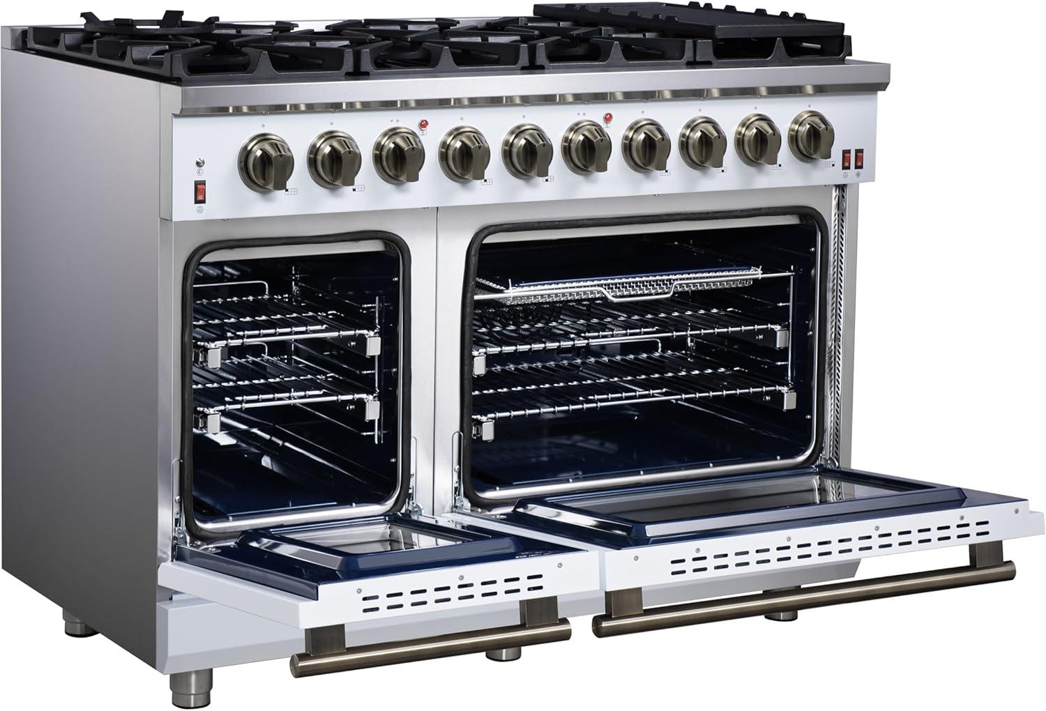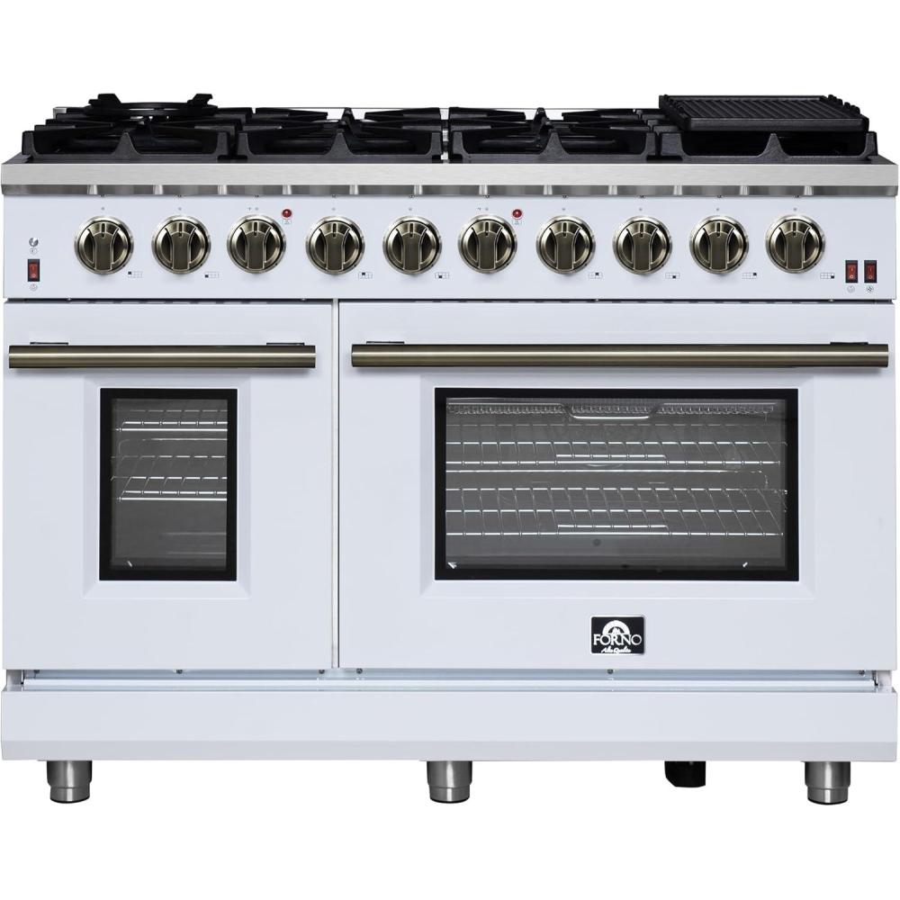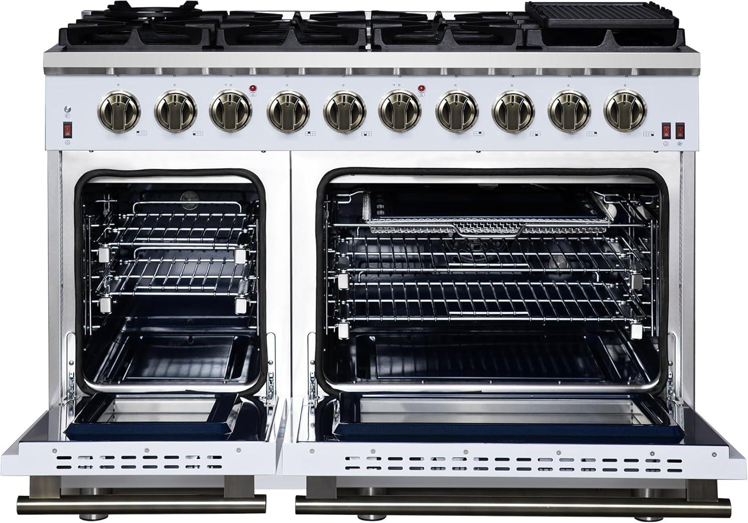 FORNO Massimo 48-Inch Freestanding Gas Range with Antique Brass Accents & 8 Sealed Burners - 4.32 cu.ft. Convection Oven + 2.26 cu.ft. Secondary Oven w/Air Fryer Kit & Wok Support - White