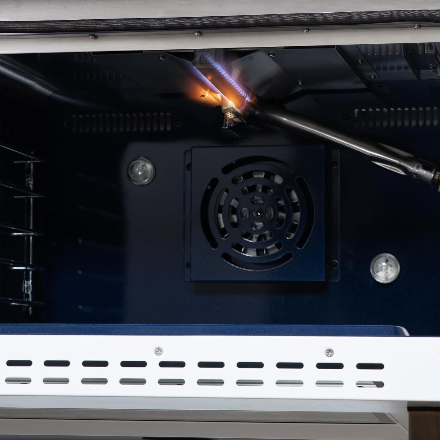 Premium Accessories Included – Comes with air fryer basket and drip pan, wok support, two reversible griddles, LP conversion kit, four telescopic oven racks, and a 3-prong plug.