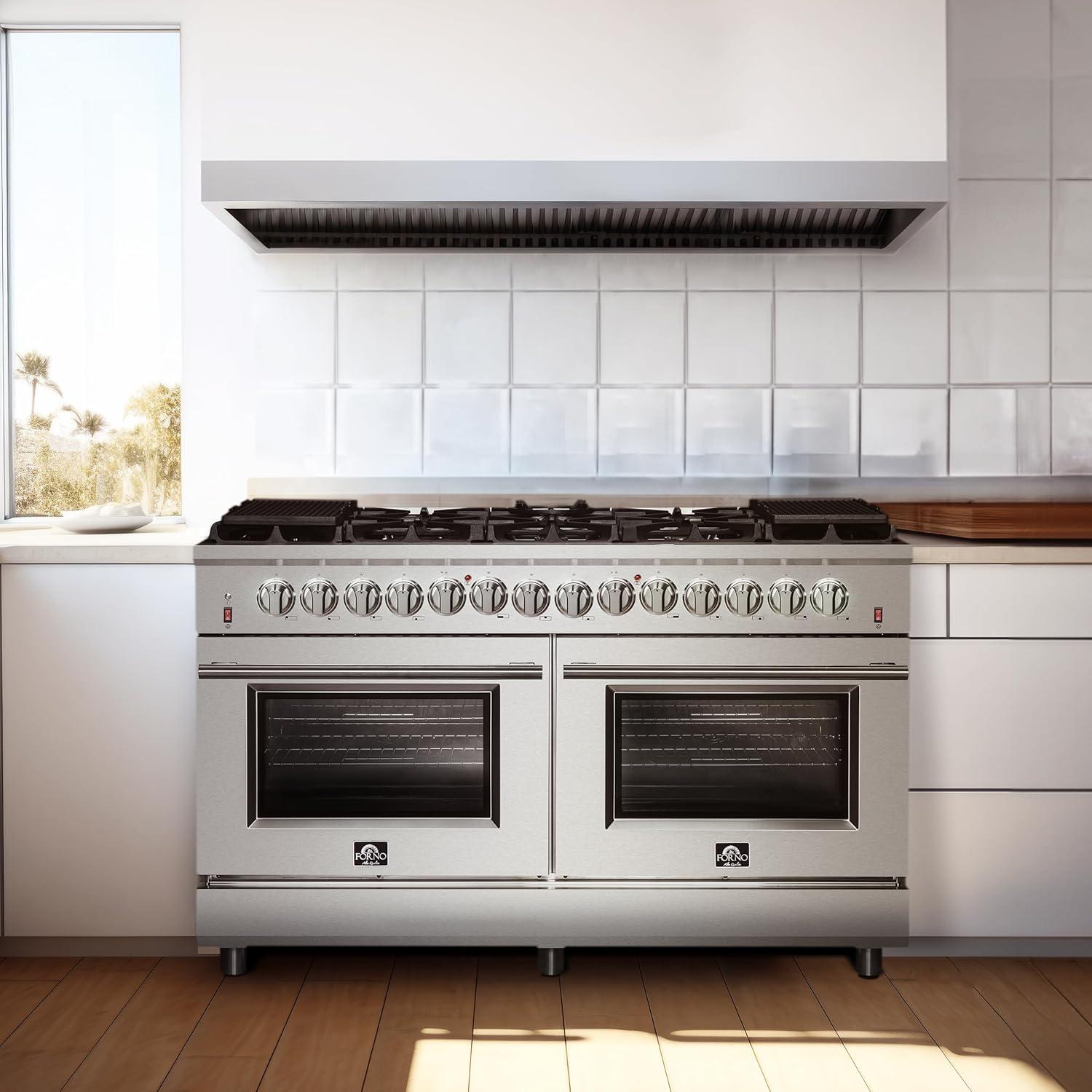 𝐏𝐑𝐎𝐅𝐄𝐒𝐒𝐈𝐎𝐍𝐀𝐋 𝐏𝐄𝐑𝐅𝐎𝐑𝐌𝐀𝐍𝐂𝐄: The Massimo 60-inch Dual Fuel Range brings professional styling and performance to your home kitchen with a durable and beautiful 304-grade stainless steel design.
