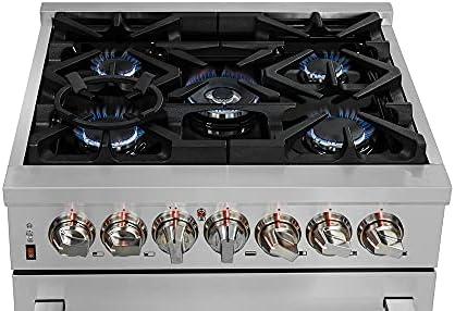 FORNO Massimo Freestanding 30-Inch Full Gas Range and Oven with 5 Italian Sealed Burners Cooktop – 4.32 Cu.Ft. Convection Stainless Steel Oven Includes Cast Iron Accessories