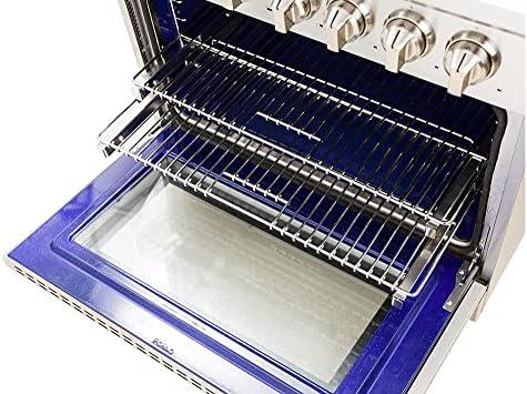 𝐏𝐑𝐄𝐌𝐈𝐔𝐌 𝐂𝐎𝐍𝐒𝐓𝐑𝐔𝐂𝐓𝐈𝐎𝐍 𝐀𝐍𝐃 𝐀𝐂𝐂𝐄𝐒𝐒𝐎𝐑𝐈𝐄𝐒: Pro-Style Handles, Zinc-Coated Metal Control Knobs with Bezels, and Sleek Stainless Steel Panels offer a durable and professional look. The 3 Heavy-Duty Electro-Plated Telescopic Oven Racks with ball bearing rack guides provide versatility for various cooking needs. The included LP conversion kit, Wok support, and Reversible Griddle offer added functionality