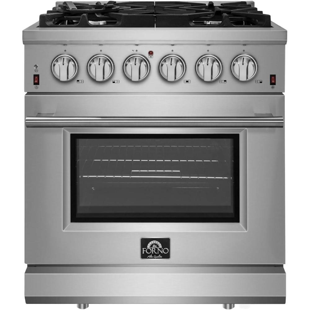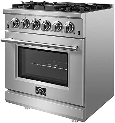FORNO Massimo Freestanding 30-Inch Full Gas Range and Oven with 5 Italian Sealed Burners Cooktop - 4.32 Cu.Ft. Convection Stainless Steel Oven Includes Cast Iron Accessories