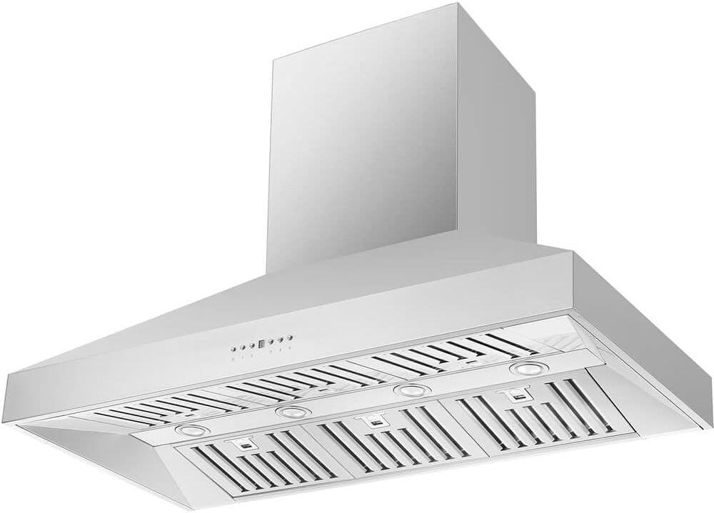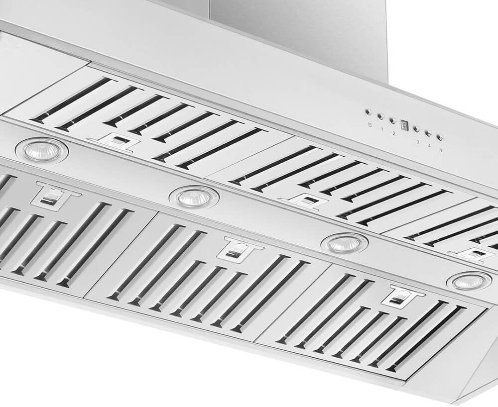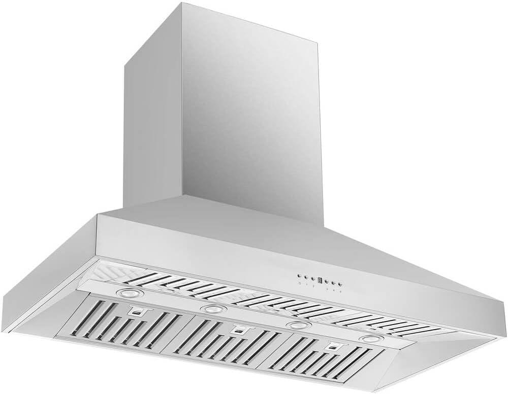 Forno Appliances introduce you to the model 5094 wall mount range hood 48-inch. The Coppito 48″ Stainless Steel wall mount Range Hood helps create superior air quality with its powerful 1200 CFM motor and four-speed touch control. The decorative stainless-steel crown molding adds an attractive finish to your kitchen design. The hood is made from high-grade stainless steel for durability and boasts noise reduction technology for a quieter sound while in use. Maximum power ventilation at a low noise level of 68dB allows you to enjoy an effective ventilation system without obtrusive noise disruption. Low setting delivers a sound level of 25dB. The included surface lights provide superior illumination and energy efficiency. Baffle filters capture heat, and gases and are dishwasher-safe making cleanup a breeze.