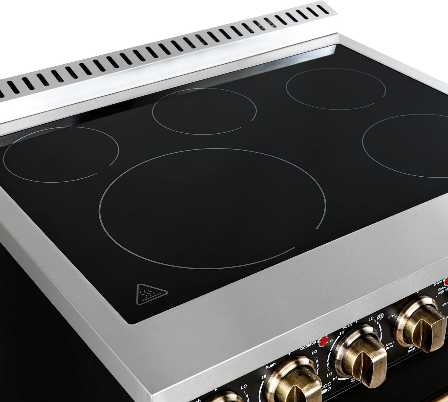Versatile 5-Element Radiant Cooktop with Precision Power Control: This electric range features five radiant elements delivering a total of 7,800 watts, offering exceptional flexibility for all cooking needs. From a gentle 100-watt warming zone to a powerful 3,000-watt burner, you can simmer sauces, boil water quickly, or keep meals warm—all with smooth, even heat on a sleek ceramic glass surface.