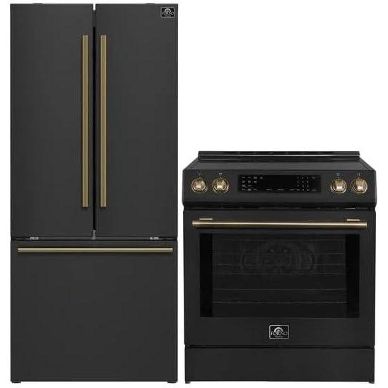 Forno Premium 2-Piece Kitchen Bundle - 30-Inch Induction Range with Built-in Air Fry Function and 30-Inch French Door Refrigerator in Black - FBDL-015-15CAUS