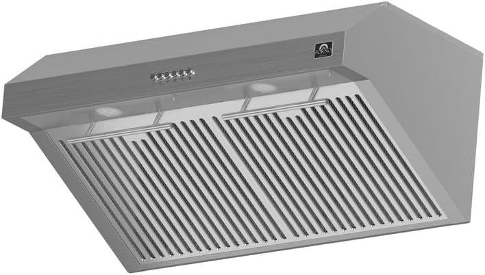 Powerful Under-Cabinet Range Hood – FORNO Bari Espresso 30″ Stainless-Steel Range Hood FRHUC5255-30 with 400 CFM airflow, 4-speed push button control, quiet squirrel cage motor, stainless steel finish, hybrid filters, and dual LED surface lights for efficient, stylish kitchen ventilation and low setting delivering just 55dB for quiet operation.