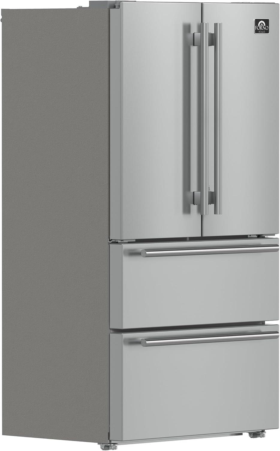Enhance your kitchen with the Forno 3-Piece Kitchen Bundle, crafted for performance, style, and reliability. This premium stainless-steel set includes a 36-inch Dual Fuel Range, a 36-inch French Door Refrigerator, and a 24-inch Dishwasher—each designed to deliver professional results for the modern home. The Forno Galiano 36-Inch Dual Fuel Range (FFSGS6156-36) features six sealed burners with a total output of 83,000 BTU, including a 20K dual-ring burner for powerful boiling and searing. Its 5.26 cu. ft. electric convection oven offers 6,300 watts of baking, roasting, and broiling power, with cast iron grates, two racks, and zinc-coated knobs for lasting durability. The Forno Moena 36-Inch French Door Refrigerator (FFRBI1820-36S) provides 19.2 cu. ft. of storage with a frost-free multi-airflow system that ensures consistent cooling throughout. The inverter compressor offers quiet, energy-efficient operation, while adjustable glass shelves and spacious drawers keep food organized. A built-in automatic ice maker produces up to 4 lbs. of ice daily, and an intuitive LED touch panel makes temperature control effortless. Completing the collection, the Forno Romano 24-Inch Dishwasher (FDWBI8035-24S) operates quietly at 52 dB and includes three adjustable racks, seven wash cycles, a 30-minute quick wash, and a delay start option. The double drying system and interior LED lighting provide spotless, convenient cleaning every time. Bring professional performance and timeless design into your kitchen with Forno—where efficiency and elegance meet. Dual Fuel Range Product Dimensions: 36 x 28 x 38 inches, 222.66 lbs Refrigerator Product Dimensions: 36 x 30.41 x 70.1 inches, 242.50 lbs Dishwasher Product Dimensions: 23.43 x 24.21 x 33.7 inches, 84.66 lbs